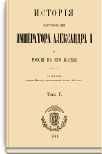 «История царствования императора Александра I и России в его время» вышла в свет в 1869–1871 гг. Ее автор, Богданович Модест Иванович (1805–1882), — генерал-лейтенант, военный писатель. В 1831 г. участвовал в сражениях под Вавром, Гроховым, Дембе-Вельке и Рагозиным. Пройдя курс в военной академии, занял в ней кафедру военной истории и стратегии, был членом Военного совета, официальным военным историографом. Оставил после себя множество военно-исторических и исторических трудов, в которых интересуется, главным образом, политической историей; его попытки критически отнестись к создавшимся легендам были встречены официальными историками весьма недоброжелательно. Повествование разделено на две части: первая, заключающаяся в I–IV томах, охватывает события 1801–1815 гг.; вторая — V, VI тома — содержит исторический период после 1815 г. до кончины Александра I в 1825 г. При создании книги Богданович использовал сведения из государственных архивов, а также до того не издававшиеся документы: бумаги императора Александра I, графа П. А. Строганова, записки адмирала А. С. Шишкова, журнал морских походов Д. Н. Сенявина и др. Полный список источников, печатных книг и рукописей, приведен в конце шестого тома. Богатый фактический материал иллюстрируют карты театров военных действий и планы главных сражений.