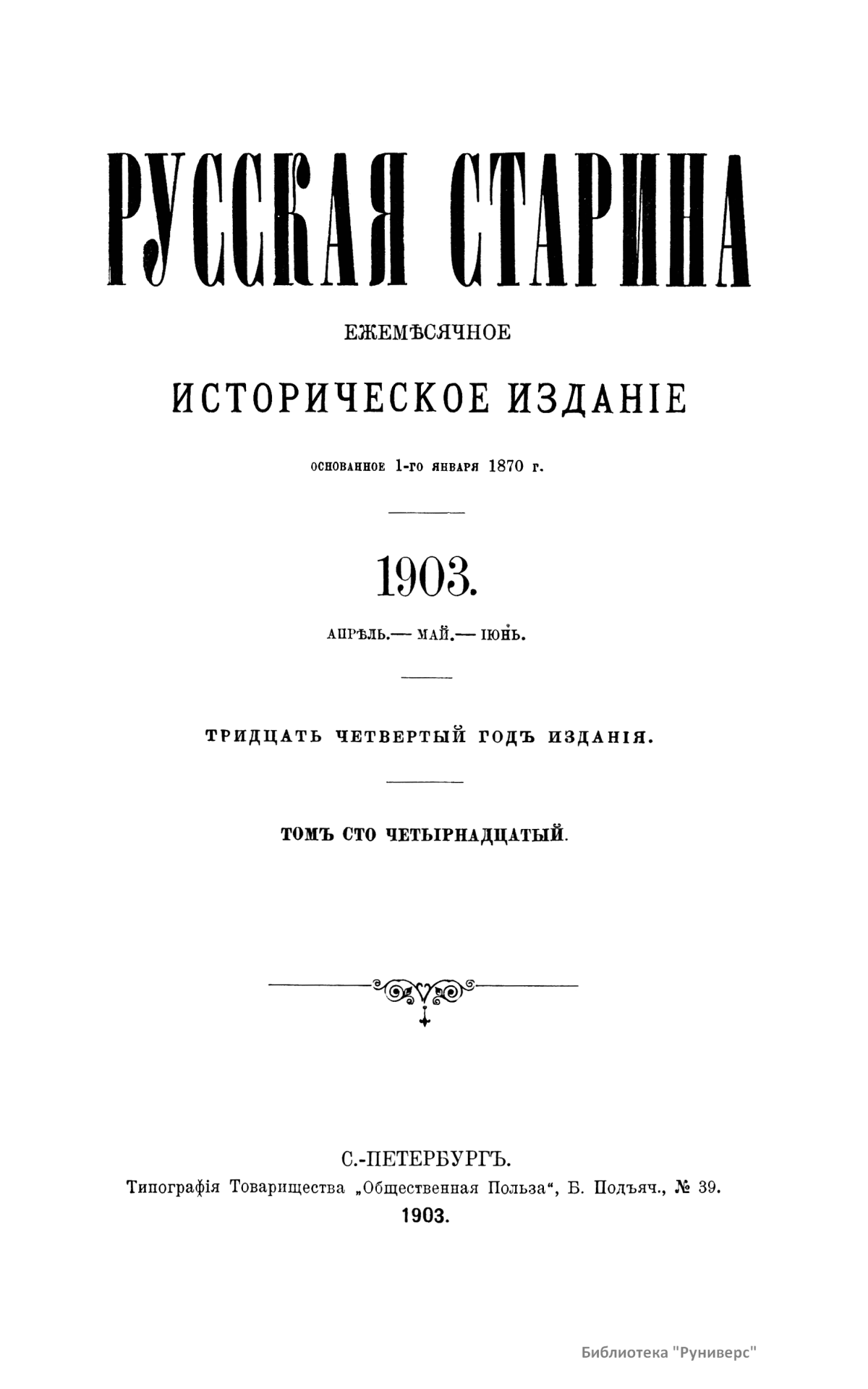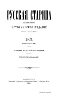 Русская старина. Томъ CXIV. 1903. Выпуски 4-6