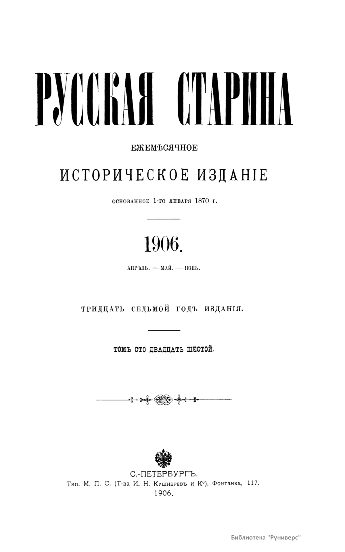 Русская старина. Томъ CXXVI. 1906. Выпуски 4-6
