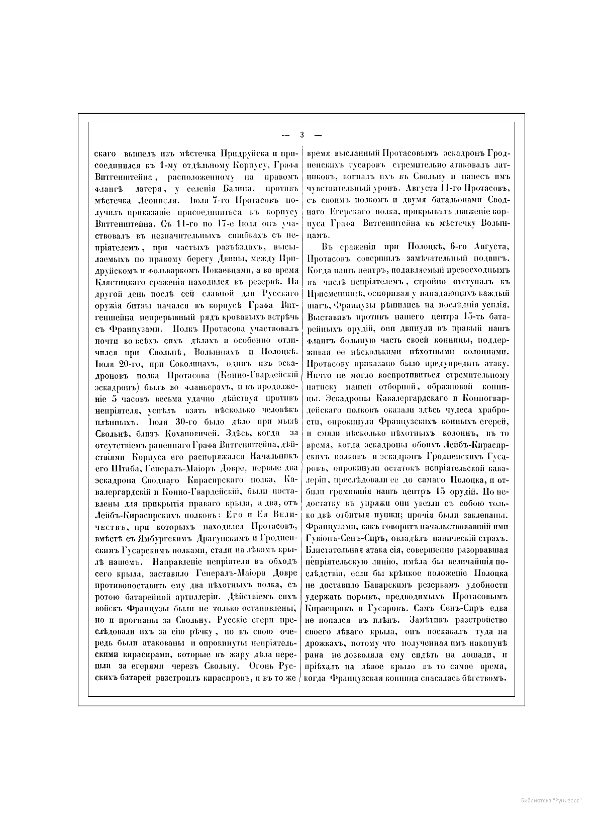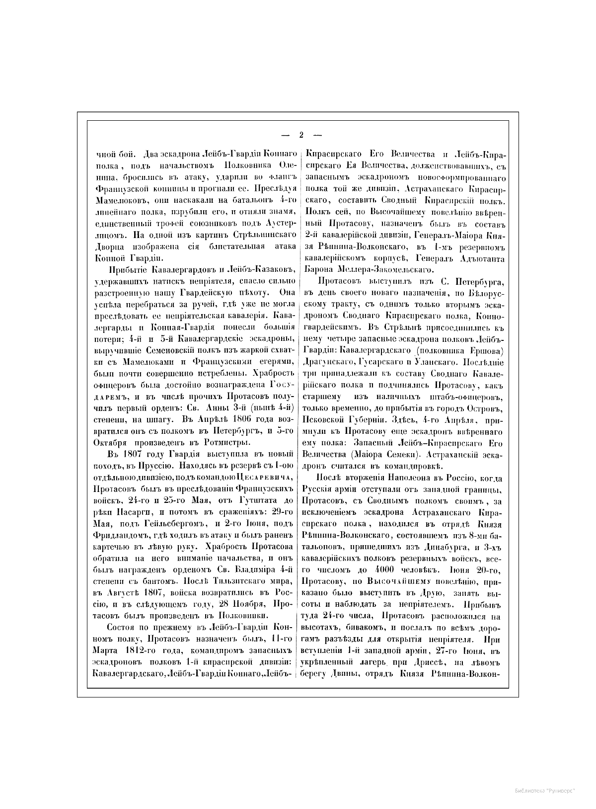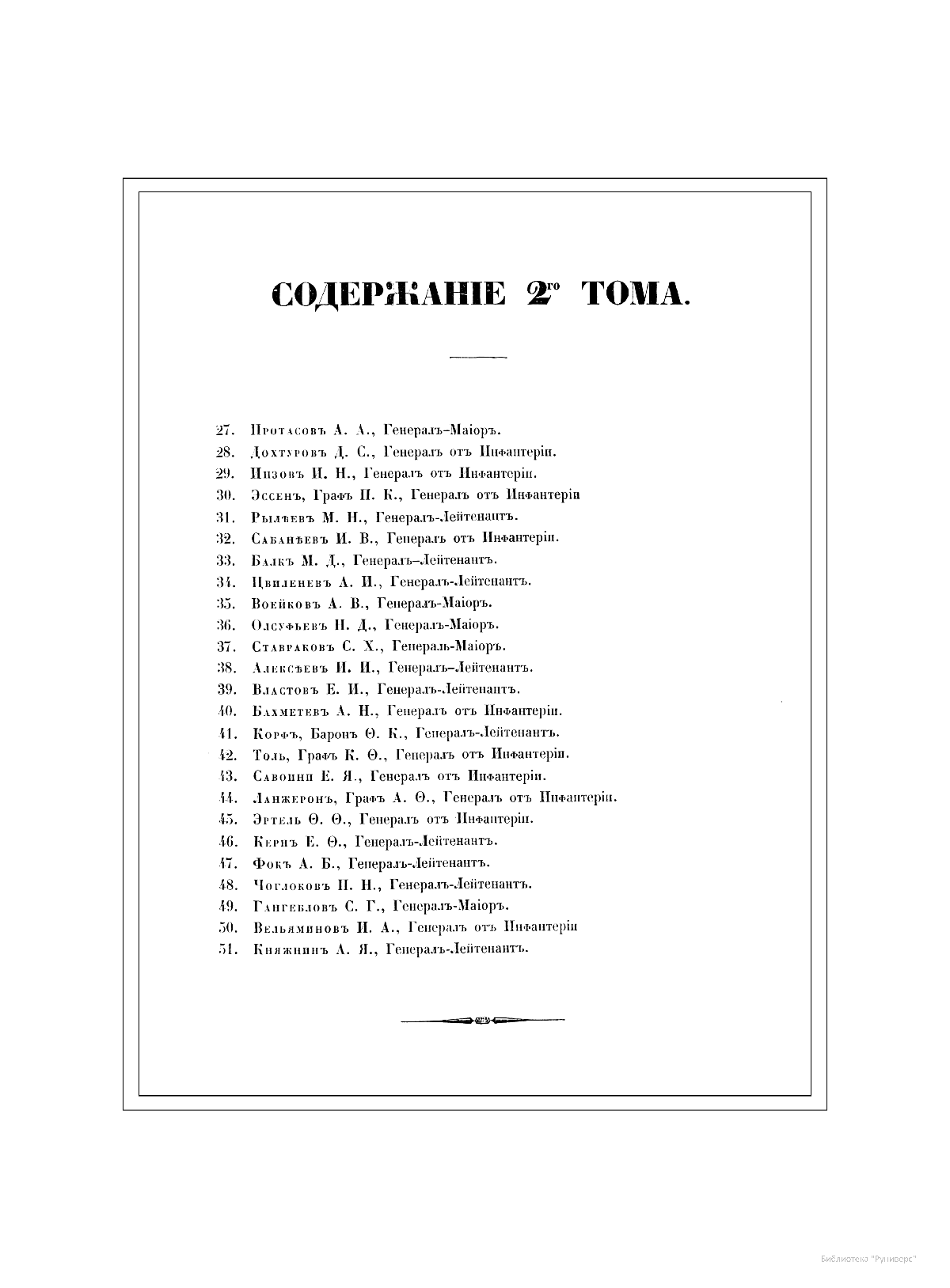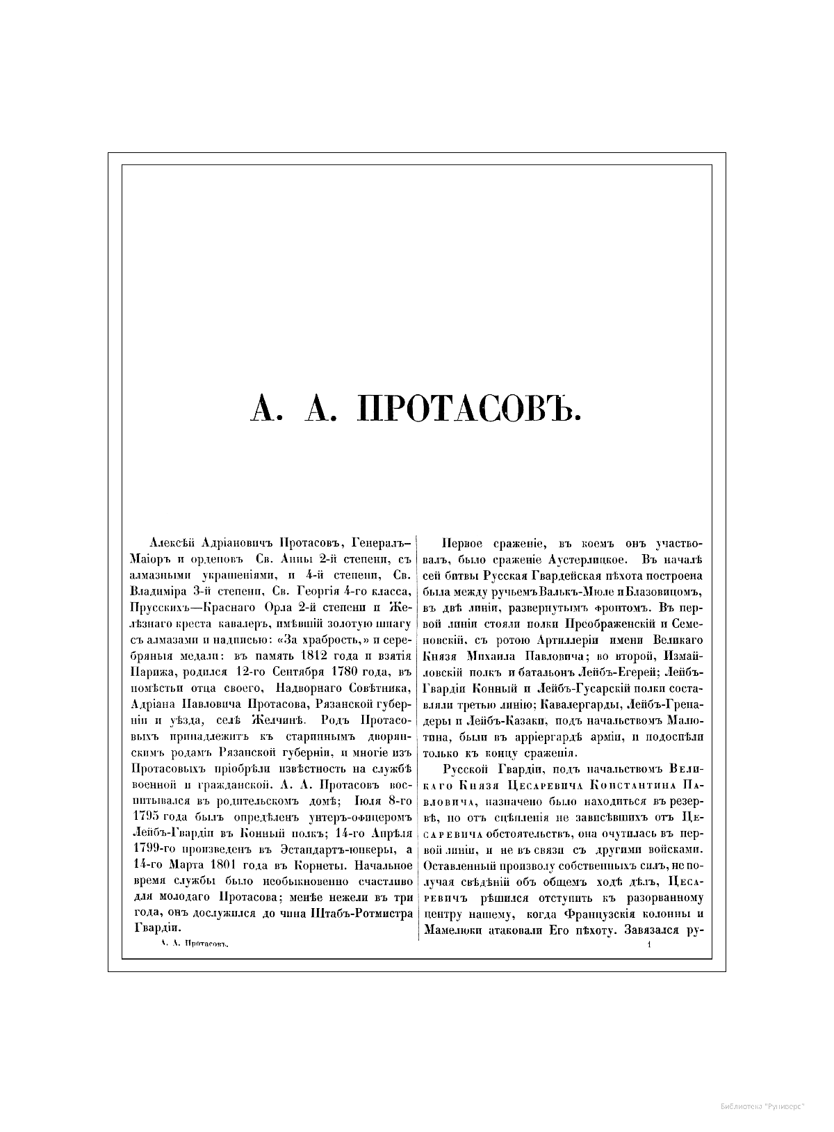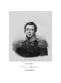 Александр Иванович Михайловский-Данилевский (1790–1848) — участник Отечественной войны 1812 г., генерал-лейтенант, военный историк и академик Санкт-Петербургской академии наук. Автор многих трудов по истории войн Российской империи. В последние годы своей жизни А. И. Михайловский-Данилевский был главным редактором «Военной галереи Зимнего дворца». Война 1812 г. получила название Отечественной и стала ярчайшей страницей российской истории и культуры. В Зимнем дворце столицы император Александр I повелел создать Военную галерею 1812 г. Ни в одном из дворцов Европы не существовало портретной галереи подобной той, что должна была украсить парадную резиденцию русских императоров. В Военной галерее Зимнего дворца должны были разместиться более 300 портретов, для исполнения которых в Петербург весной 1819 г. приехал известный английский живописец Джордж Доу (Даву). В создании портретной галереи принимали участие и русские художники — В. А. Голике, А. В. Поляков. Торжественное открытие галереи состоялось уже в царствование Николая I, в годовщину изгнания французов из России, 25 декабря 1826 г. Шеститомное издание «Император Александр I и его сподвижники в 1812, 1813, 1814 и 1815 гг.: Военная галерея Зимнего дворца, издаваемая с высочайшего соизволения» выходило на протяжении 1845–1849 гг. в петербургской типографии Карла Крайя. Издание объединило портреты и биографии российских генералов, участвовавших в Отечественной войне и заграничных походах. Главным редактором, а также составителем многих биографий стал А. И. Михайловский-Данилевский. Портреты с живописных оригиналов были гравированы на стали парижскими художниками Гюо и Долле. На страницах издания почетное место отведено императору Александру I, представлены биографии и портреты М. И. Кутузова, М. Б. Барклая-де-Толли, вел. кн. Константина Павловича, А. А. Аракчеева, П. П. Коновницына, Д. П. Немировского, Д. С. Дохтурова, П. И. Багратиона, Н. Н. Раевского, А. П. Ермолова, М. И. Платова и многих других героев. Труд А. И. Михайловского-Данилевского содержит обширный документальный и мемуарный материал, представляет подробное описание и анализ военных действий России и Франции на протяжении Отечественной войны 1812 г.