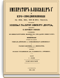 Александр Иванович Михайловский-Данилевский (1790–1848) — участник Отечественной войны 1812 г., генерал-лейтенант, военный историк и академик Санкт-Петербургской академии наук. Автор многих трудов по истории войн Российской империи. В последние годы своей жизни А. И. Михайловский-Данилевский был главным редактором «Военной галереи Зимнего дворца». Война 1812 г. получила название Отечественной и стала ярчайшей страницей российской истории и культуры. В Зимнем дворце столицы император Александр I повелел создать Военную галерею 1812 г. Ни в одном из дворцов Европы не существовало портретной галереи подобной той, что должна была украсить парадную резиденцию русских императоров. В Военной галерее Зимнего дворца должны были разместиться более 300 портретов, для исполнения которых в Петербург весной 1819 г. приехал известный английский живописец Джордж Доу (Даву). В создании портретной галереи принимали участие и русские художники — В. А. Голике, А. В. Поляков. Торжественное открытие галереи состоялось уже в царствование Николая I, в годовщину изгнания французов из России, 25 декабря 1826 г. Шеститомное издание «Император Александр I и его сподвижники в 1812, 1813, 1814 и 1815 гг.: Военная галерея Зимнего дворца, издаваемая с высочайшего соизволения» выходило на протяжении 1845–1849 гг. в петербургской типографии Карла Крайя. Издание объединило портреты и биографии российских генералов, участвовавших в Отечественной войне и заграничных походах. Главным редактором, а также составителем многих биографий стал А. И. Михайловский-Данилевский. Портреты с живописных оригиналов были гравированы на стали парижскими художниками Гюо и Долле. На страницах издания почетное место отведено императору Александру I, представлены биографии и портреты М. И. Кутузова, М. Б. Барклая-де-Толли, вел. кн. Константина Павловича, А. А. Аракчеева, П. П. Коновницына, Д. П. Немировского, Д. С. Дохтурова, П. И. Багратиона, Н. Н. Раевского, А. П. Ермолова, М. И. Платова и многих других героев. Труд А. И. Михайловского-Данилевского содержит обширный документальный и мемуарный материал, представляет подробное описание и анализ военных действий России и Франции на протяжении Отечественной войны 1812 г.