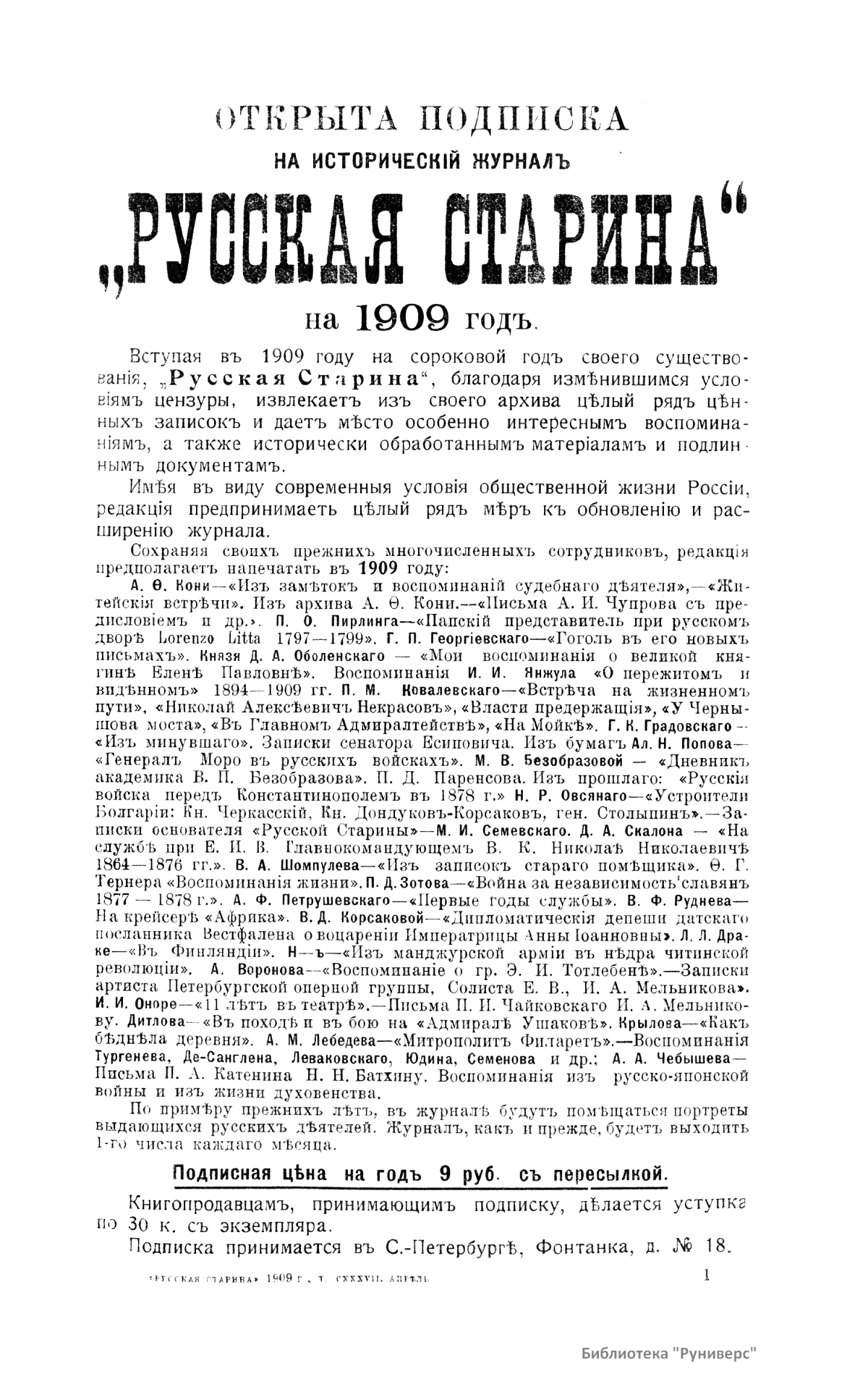 Русская старина. Томъ CXXXVIII. 1909. Выпуски 4-6