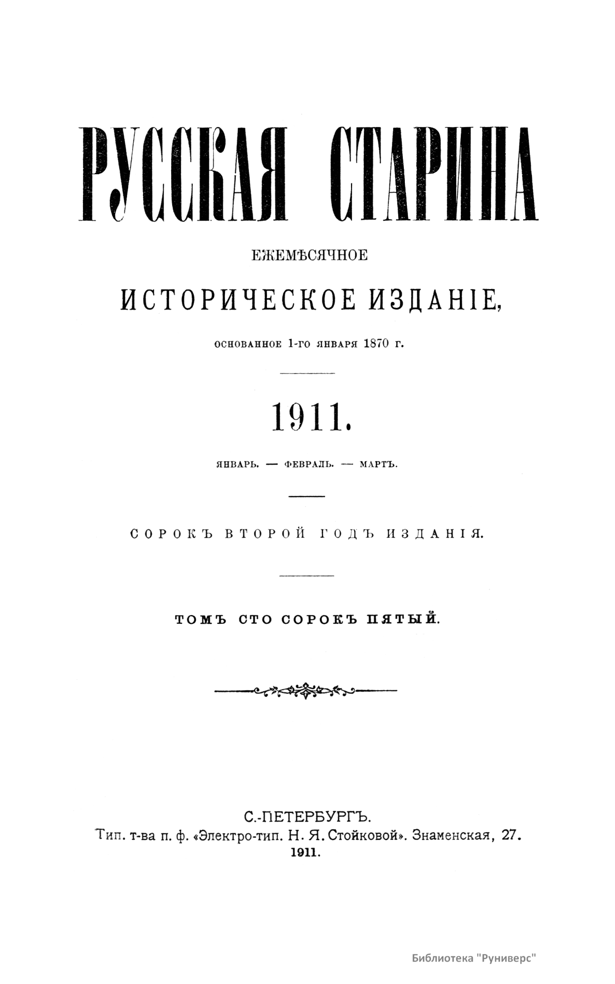 Русская старина. Томъ CXLV. 1911. Выпуски 1-3