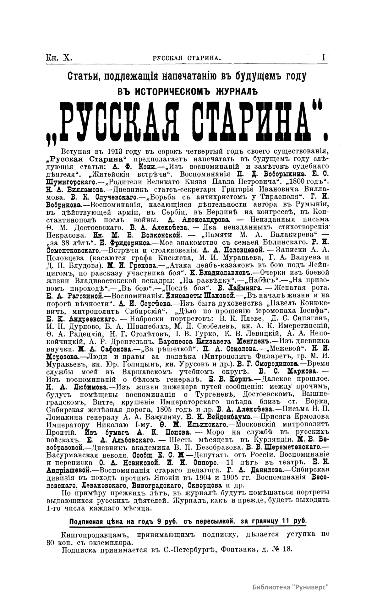 Крупным вкладом в журнал явились записки и дневник А. В. Никитенко (1888-1892), а также записки Н. И. Пирогова (1884-1885, 1887).
