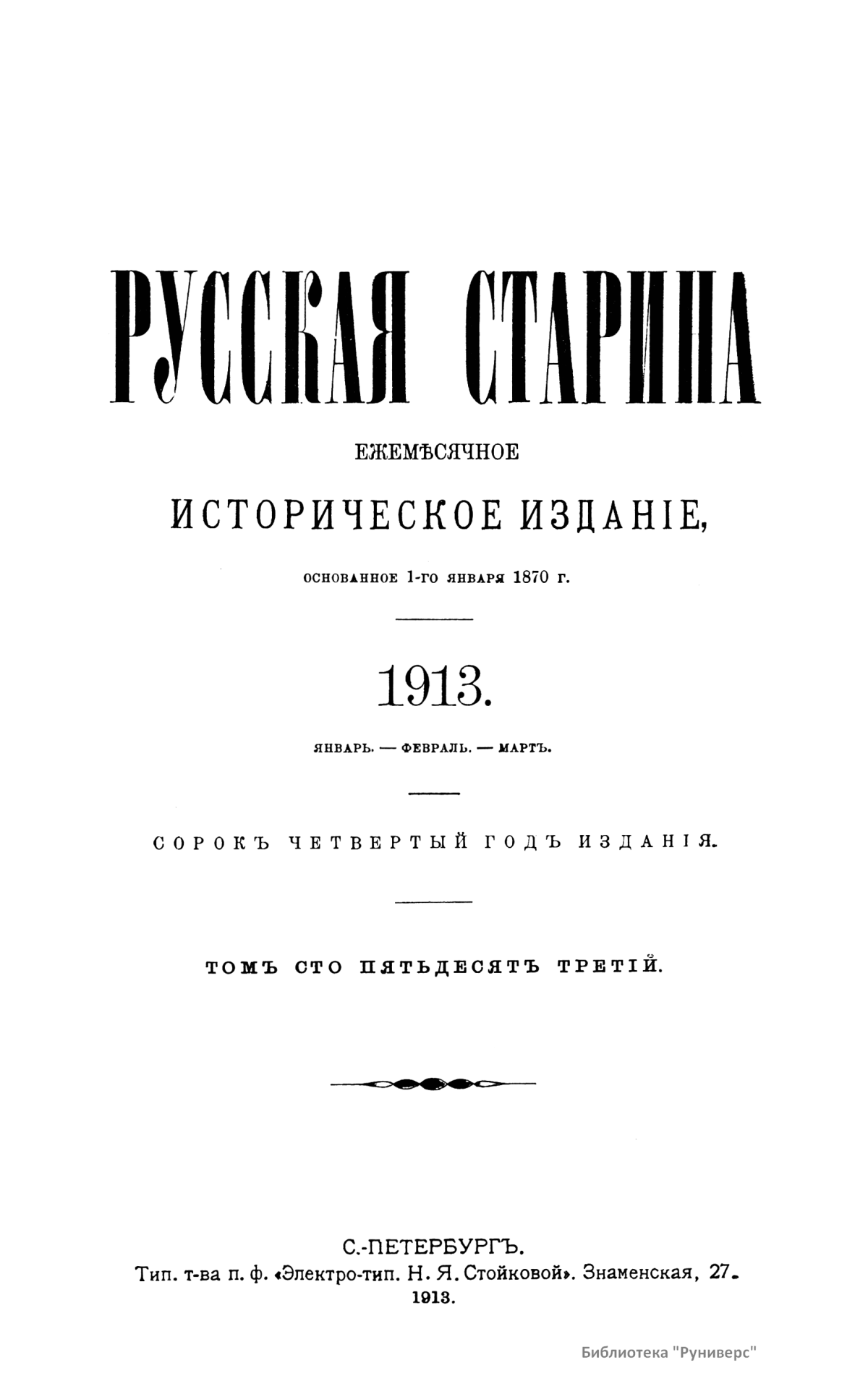 Русская старина. Томъ CLIII. 1913. Выпуски 1-3