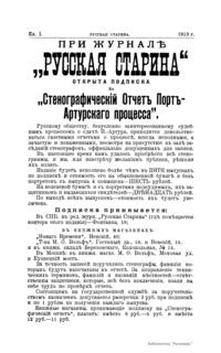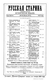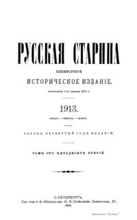«Русская старина», ежемесячный исторический журнал, выходил в Петербурге в 1870-1918. Основан, издавался и редактировался (1870-1892) М. И. Семевским при участии В. И. Семевского. Последующими редакторами были Н. К. Шильдер (1892-1896), Н. Ф. Дубровин (1896-1904), военные историки С. П. Зыков, П. Н. Воронов.