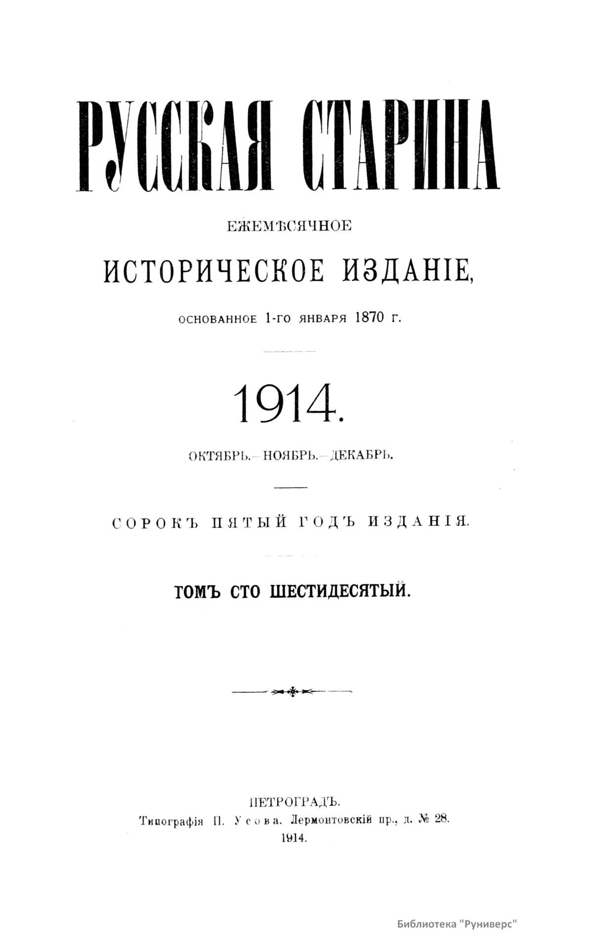 Русская старина. Том CLX. 1914. Выпуски 10-12
