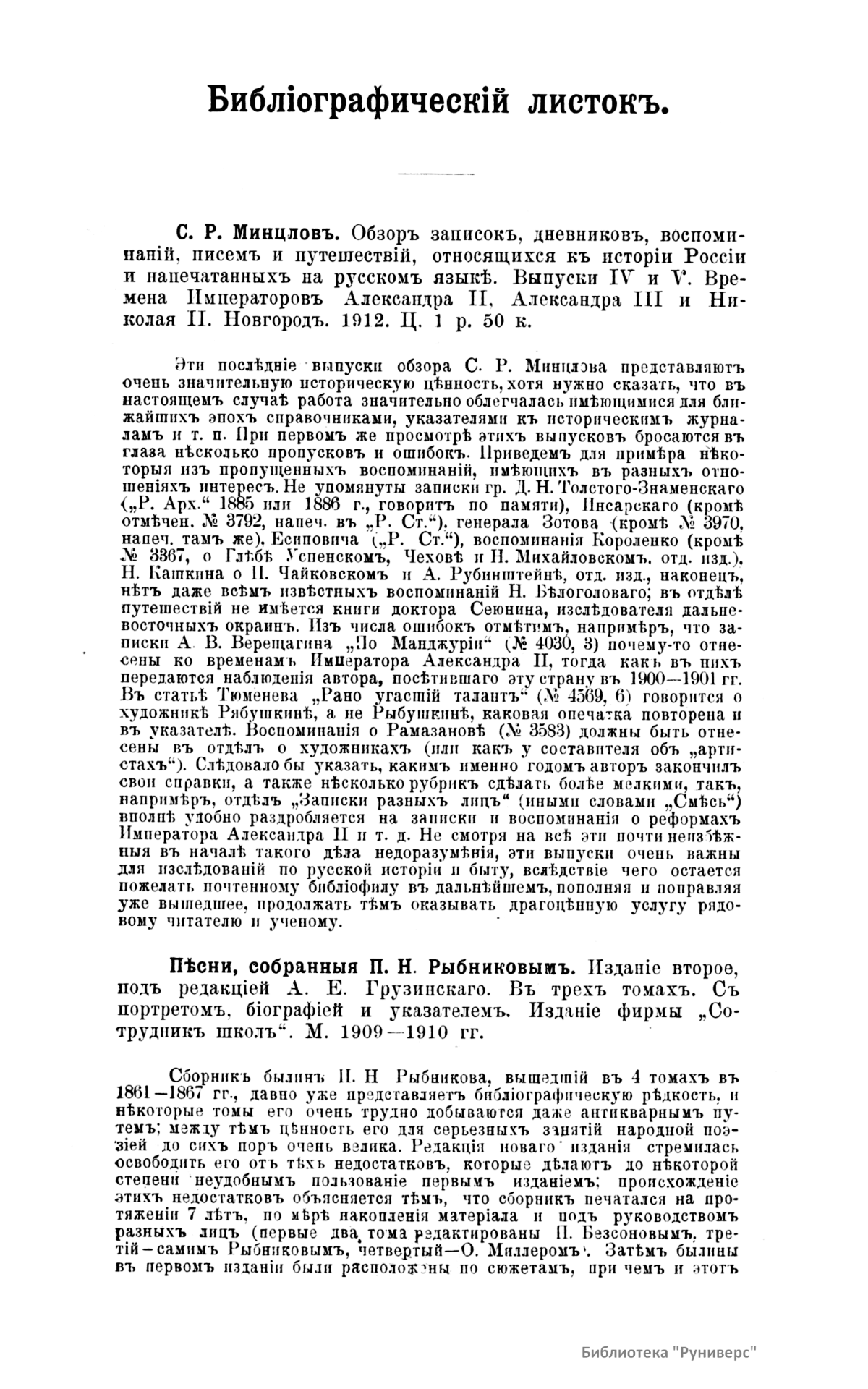 Крупным вкладом в журнал явились записки и дневник А. В. Никитенко (1888-1892), а также записки Н. И. Пирогова (1884-1885, 1887).