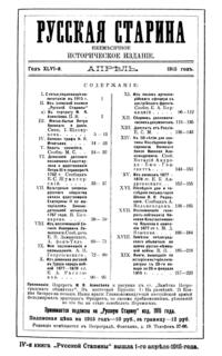 «Русская старина», ежемесячный исторический журнал, выходил в Петербурге в 1870-1918. Основан, издавался и редактировался (1870-1892) М. И. Семевским при участии В. И. Семевского. Последующими редакторами были Н. К. Шильдер (1892-1896), Н. Ф. Дубровин (1896-1904), военные историки С. П. Зыков, П. Н. Воронов.