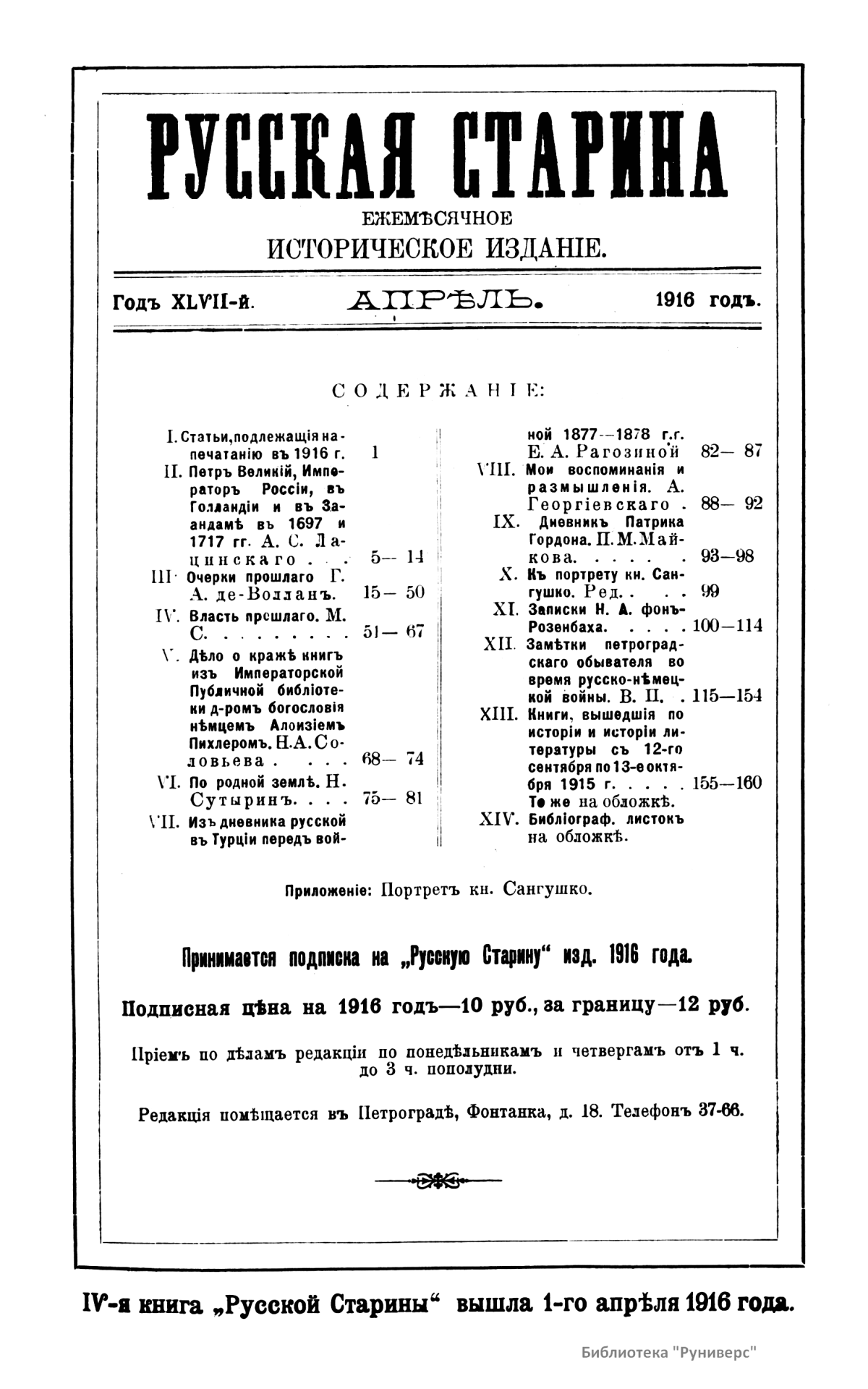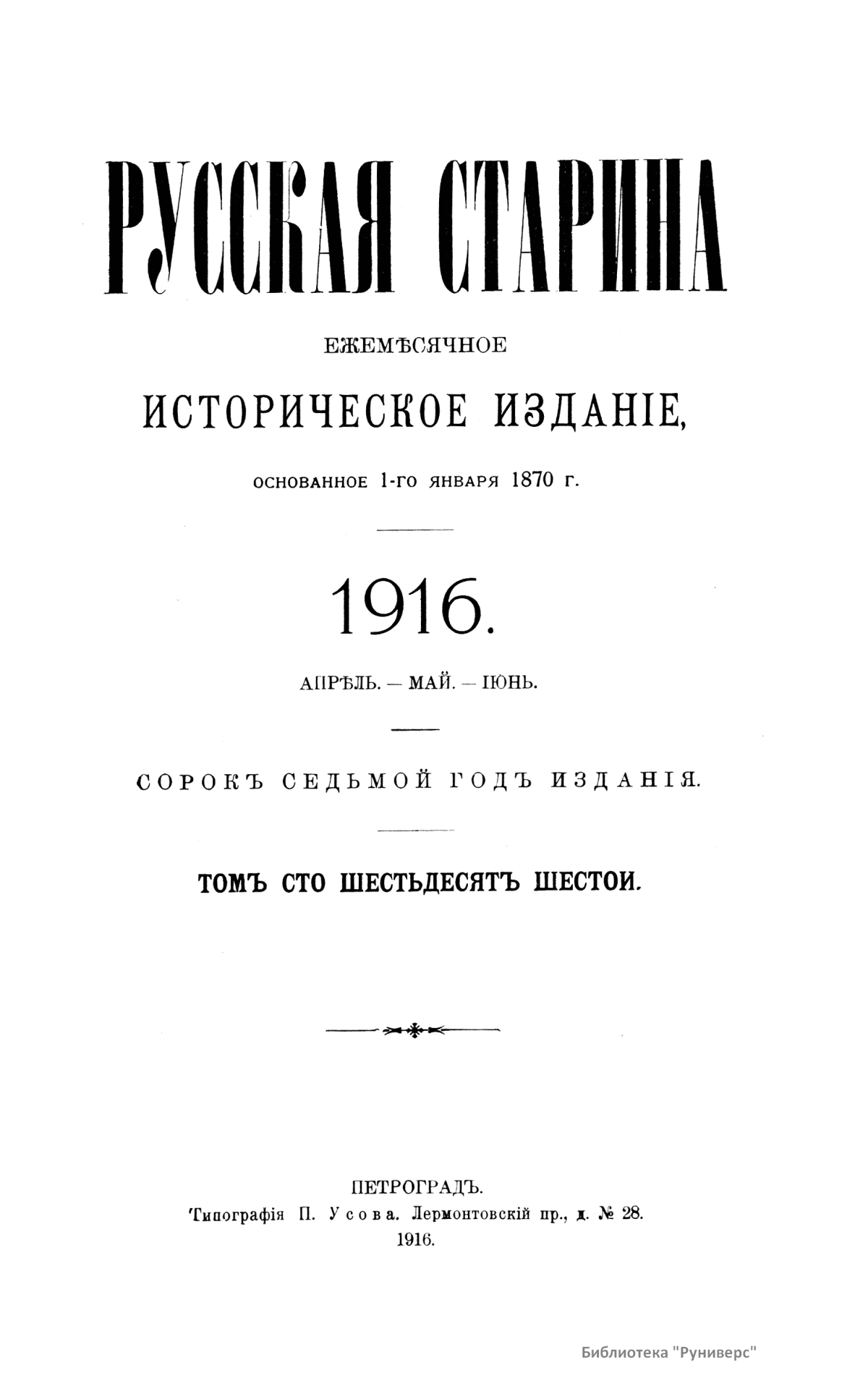 Русская старина. Томъ CLXVI. 1916. Выпуски 4-6