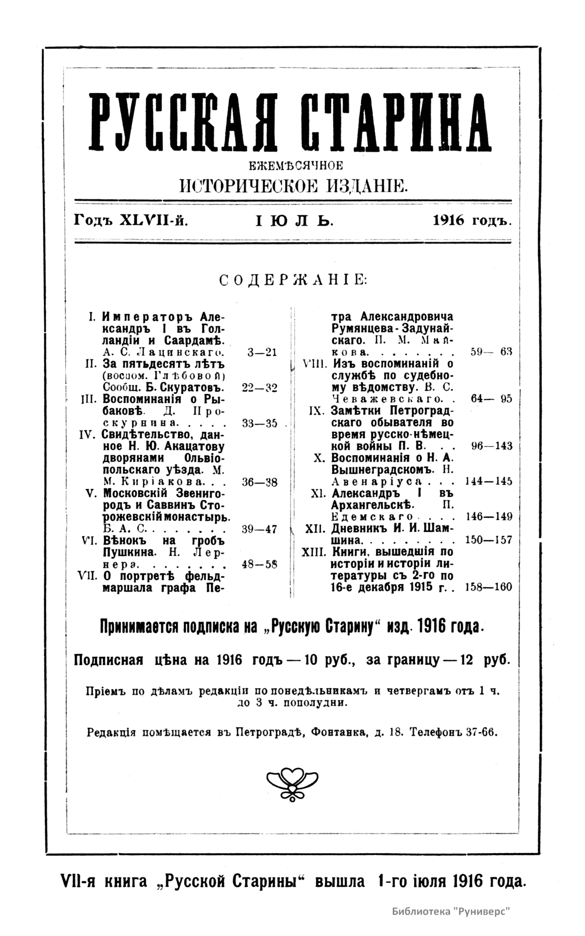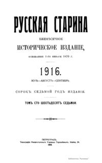 Русская старина. Томъ CLXVII. 1916. Выпуски 7-9