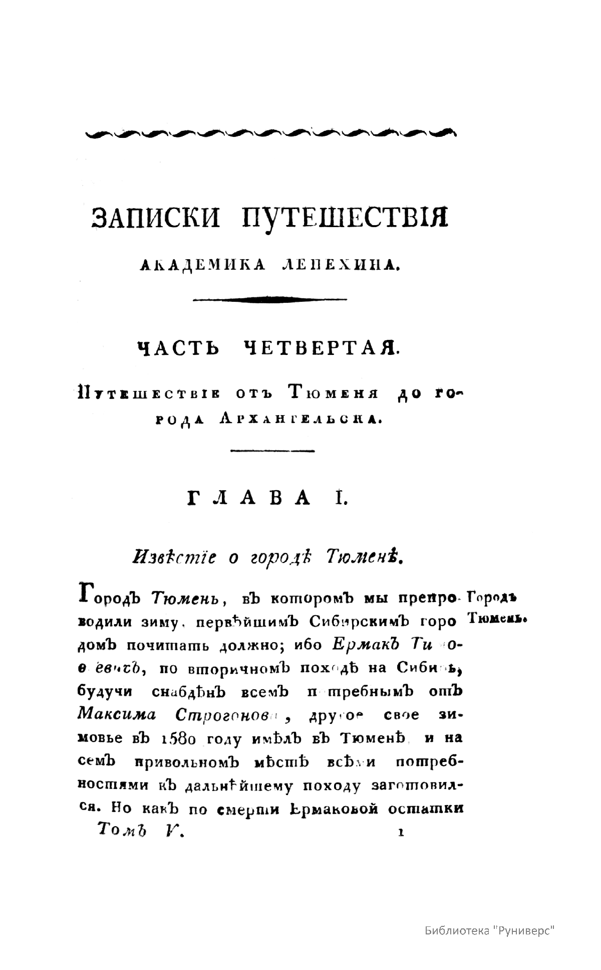 Полное собрание ученых путешествий по России, издаваемое Императорскою Академией Наук, по предложению ее президента. Том пятый. Продолжение Записок Путешествия Академика Лепехина