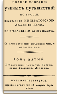 Полное собранiе ученыхъ путешествiй по Россiи, издаваемое Императорскою Академiею Наукъ, по предложенiю ея президента. Томъ пятый. Продолженiе Записок Путешествiя Академика Лепехина