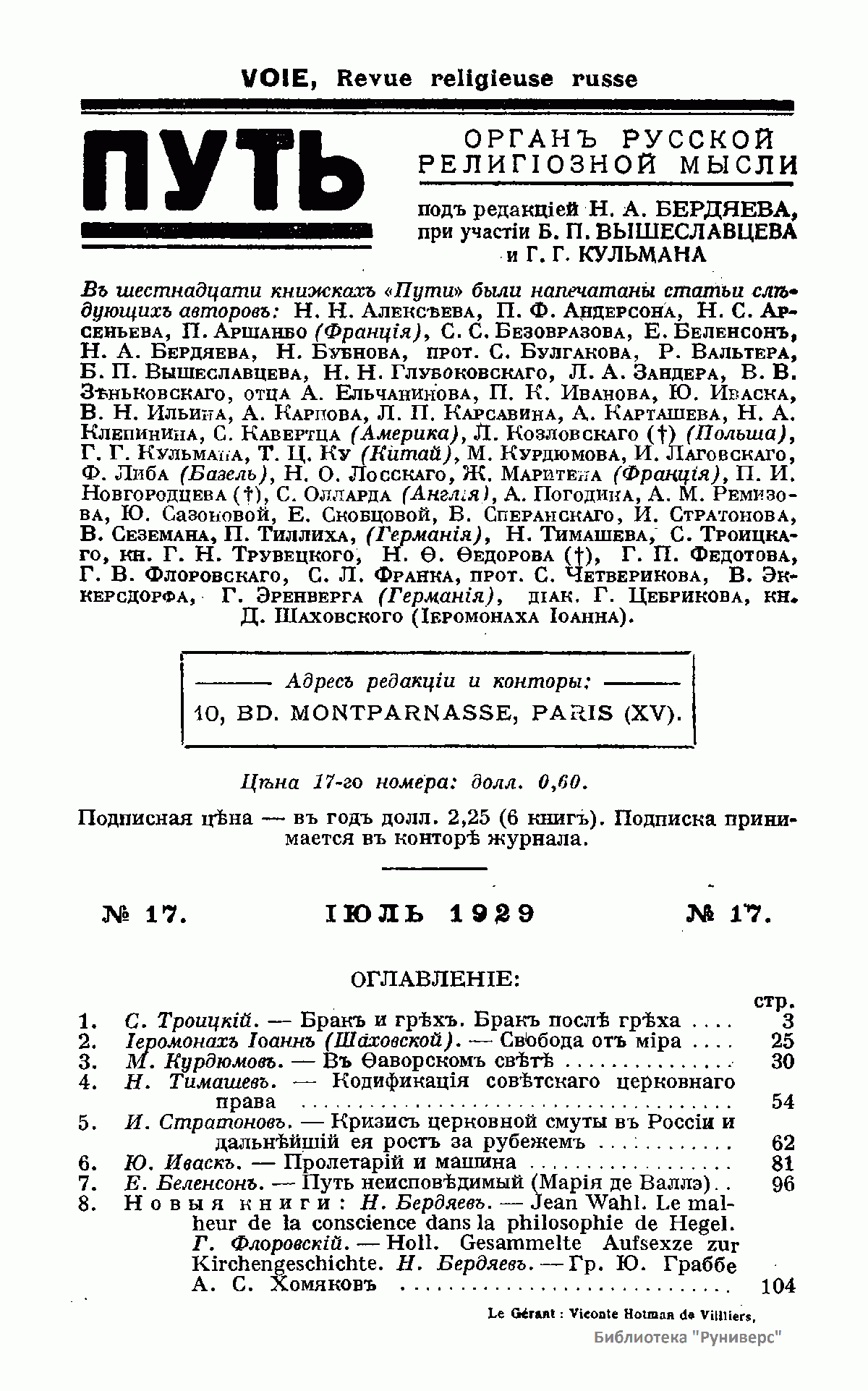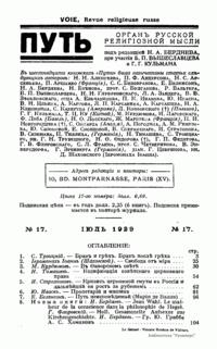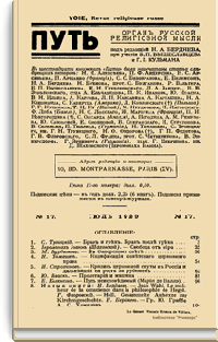 Путь: Орган русской религиозной мысли. №17. Июль 1929