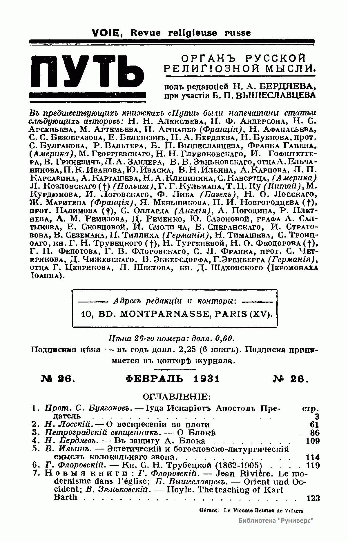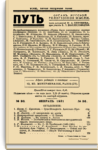 Путь: Орган русской религиозной мысли. №26. Февраль 1931