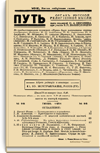 «Путь: Орган русской религиозной мысли» – журнал, издававшийся в Париже с сентября 1925 г. по март 1940 г., собравший на своих страницах все философские и богословские силы русской эмиграции. В редакционной статье «Духовные задачи русской эмиграции» («Путь», № 1. Сентябрь 1925 г.) отмечалось, что журнал ставит своей целью сохранение преемственности в процессе существования русской духовной культуры, а также стремится к преодолению сформировавшейся к тому времени эмигрантской психологии, сильно политизированной и противоречивой в своем отношении к Русской Православной Церкви и Советской России, что создавало угрозу раскола русской эмиграции.