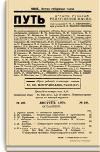 Путь: Орган русской религиозной мысли. №29. Август 1931