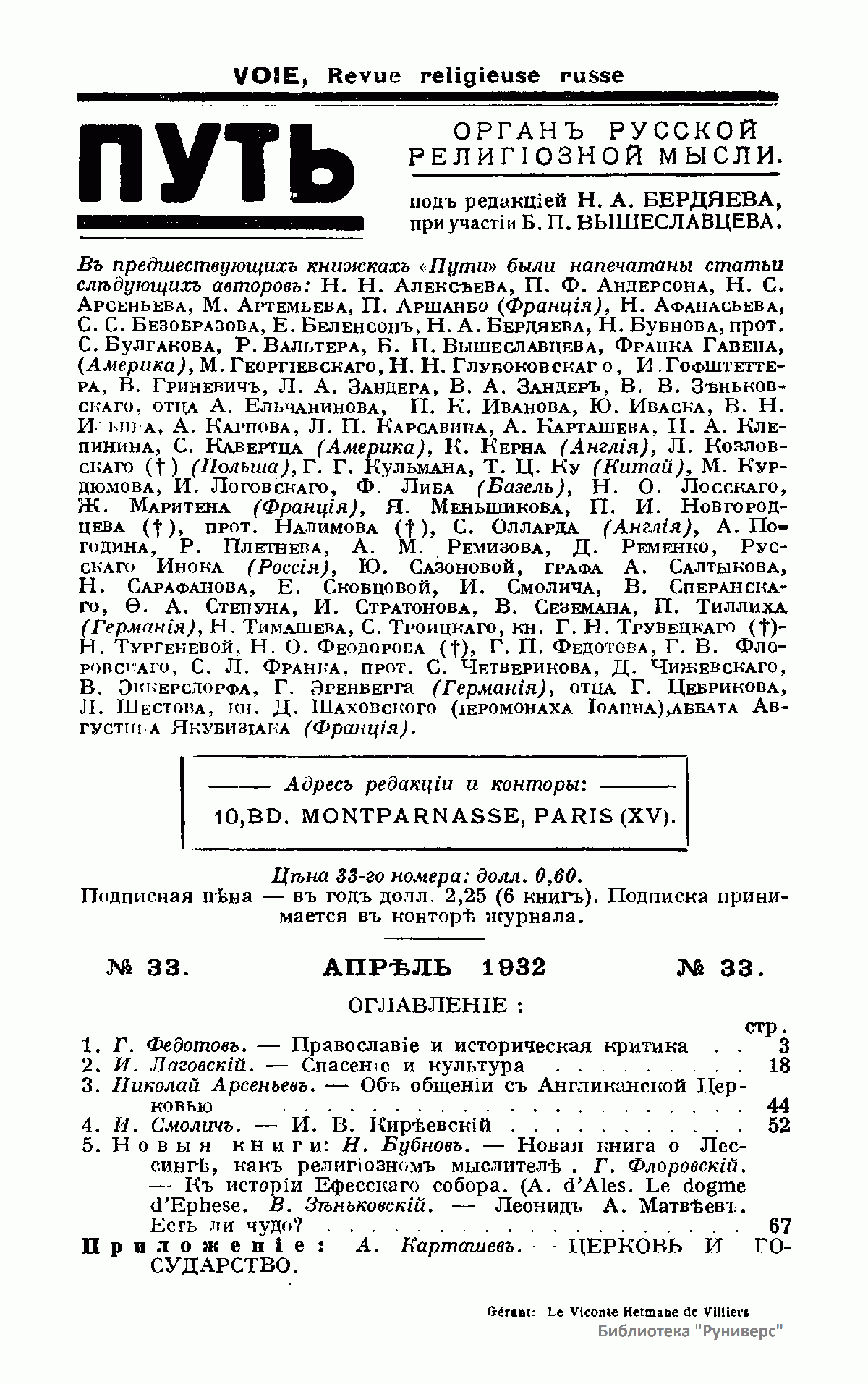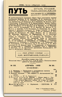 Путь: Орган русской религиозной мысли. №33. Апрель 1932