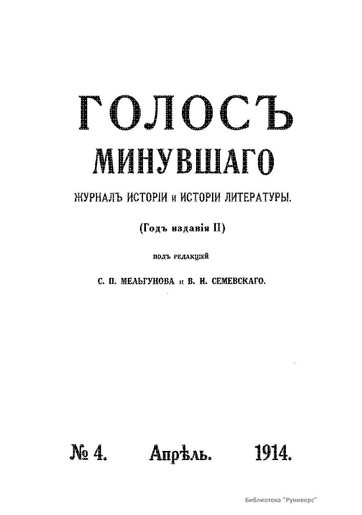 Голосъ минувшаго. 1914. 4. Апрѣль