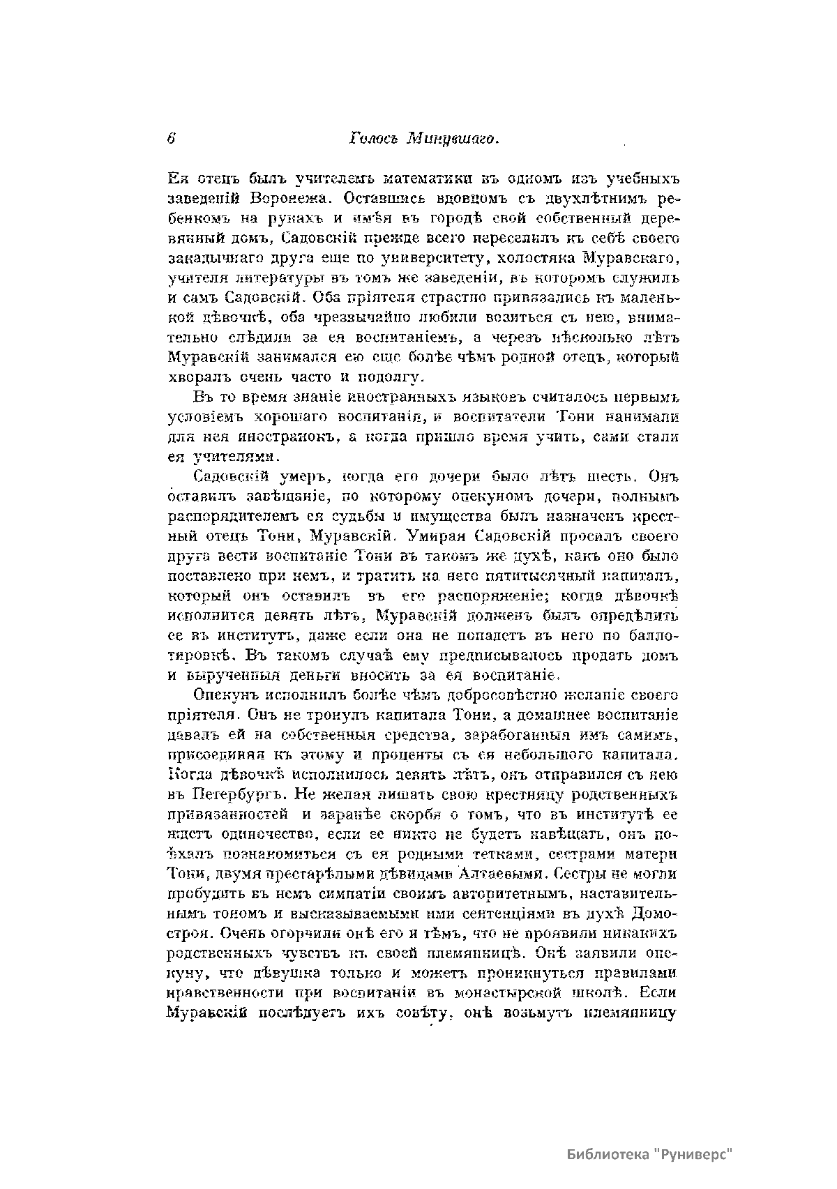«Голос Минувшего» — журнал истории и истории литературы либерально-народнического направления, издававшийся в Москве с 1913 по 1923 год. Издателем журнала в 1913–1922 годах были известные русские историки, публицисты и общественные деятели С. П. Мельгунов (1880–1956) и В. И. Семевский (1848–1916). В редакционную коллегию также входили А. К. Дживелегов и П. Н. Сакулин. До 1919 «Голос минувшего» выходил ежемесячно, затем нерегулярно, всего было выпущено 65 номеров. В журнале публиковались интереснейшие материалы, посвященные истории литературы и общественных движений в России второй половины XVIII – начала XX веков. Здесь можно найти: статьи по вопросам русской и всеобщей истории, истории литературы, философии, искусства и археологии. В издании представлены: историческая беллетристика, биографии русских и иностранных деятелей, критика и библиография, новости русской и иностранной науки, обзор журналов русских и иностранных, хроника, мемуары, записки, дневники и письма декабристов, видных народовольцев и эсеров, крупных общественных деятелей и царских администраторов, писателей, военачальников и др. Среди авторов: Е. В. Тарле, А. Ф. Кони, А. К. Дживелегов, А. А. Кизеветтер, В. Г. Короленко и др. Стремление сделать журнал интересным для более широкого круга читателей способствовало тому, что в «Голосе Минувшего», хоть и в ограниченном количестве, печатались статьи по истории искусства и помещались иллюстрации: портреты, картины и рисунки, не знакомые или мало знакомые публике. В журнале опубликован целый ряд интересных писем, документов и воспоминаний. Абсолютное большинство текстов никогда не переиздавалось. Журнал снабжен указателями имен за 1913–1922 годы и систематическим указателем содержания.