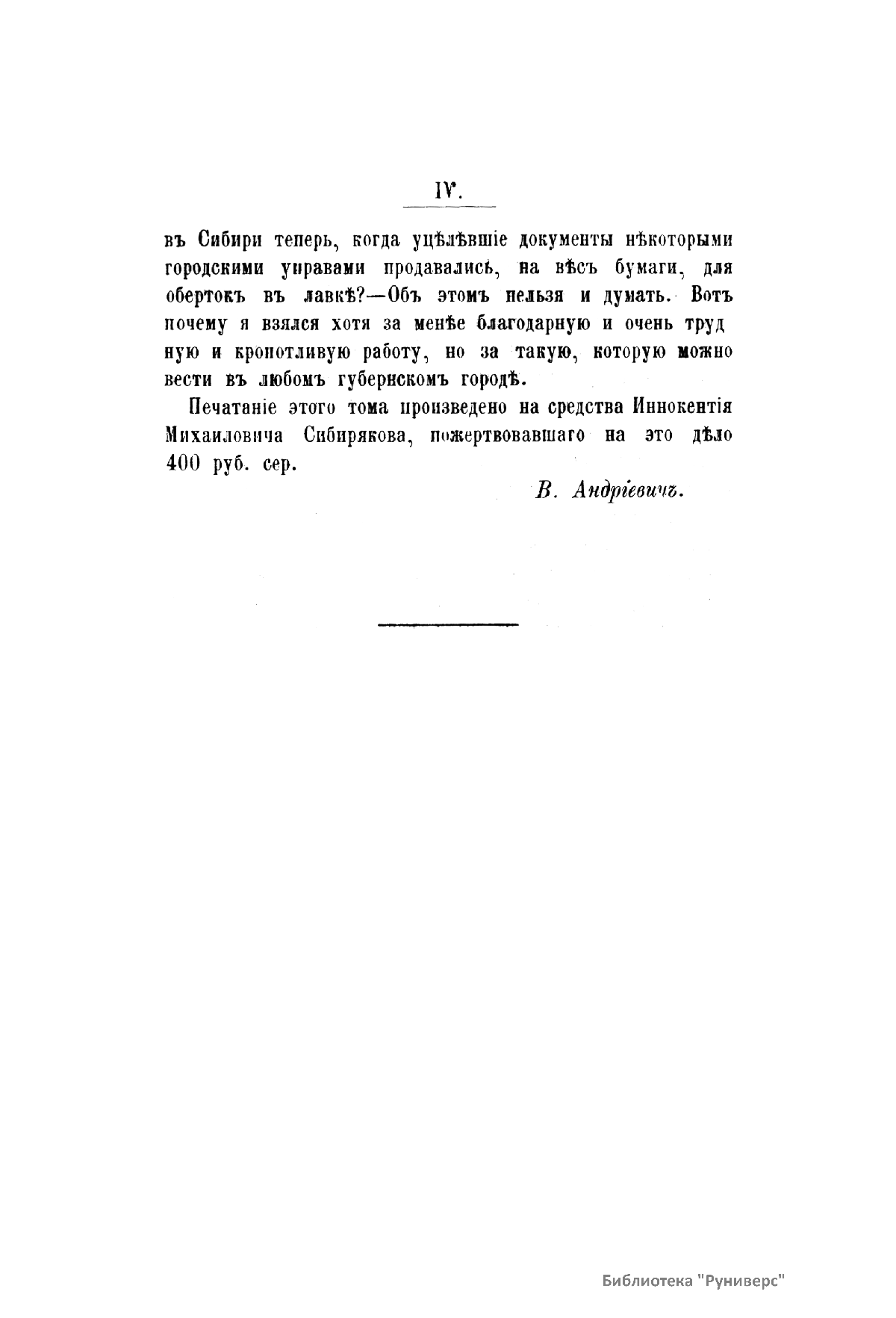 » с тем, чтобы продолжать эту работу впредь. После этого изменил название четвертого и пятого тома, которые стали соответственно первой и второй частью сочинения «Сибирь в царствование императрицы Екатерины II». Данное исследование, представляющее собой собрание материалов по истории Сибири (главным образом это выписки из «Полного собрания законов», а также выборка документов из сенатского архива), в свое время стало видным явлением в историографии Сибири и не утратило своего исторического значения до сих пор.