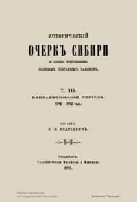Исторический очерк Сибири по данным, представляемым Полным собранием законов. Т. III. Елизаветинский период. 1742 - 1762 года