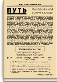 Путь: Орган русской религиозной мысли. №57. Август-Сентябрь-Октябрь 1938