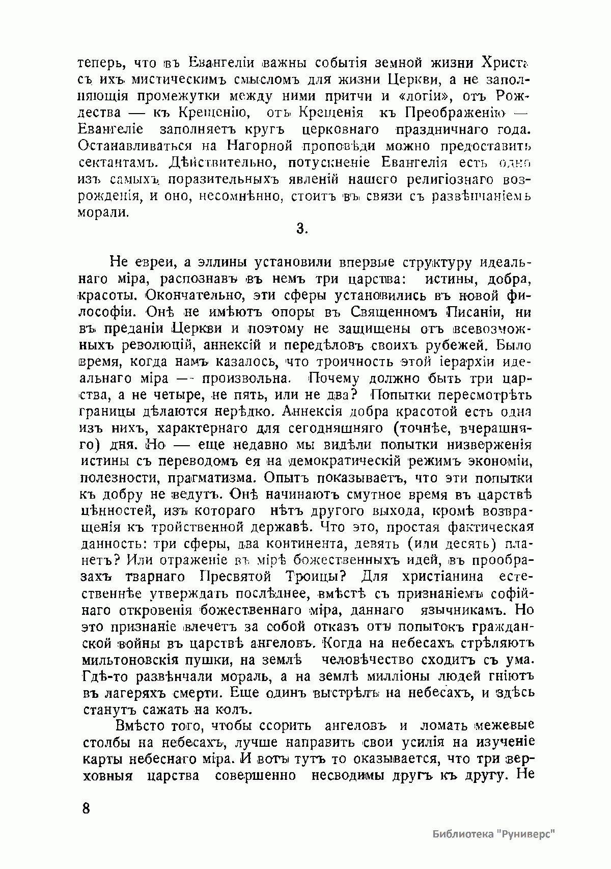 (1877- 1950) и др. В дальнейшем состав сотрудников менялся, привлекались также немецкие и английские корреспонденты (Ж. Маритен, П. Тиллих, С. Оллард и др.). Всего с журналом за 15 лет его существования сотрудничали около 130 человек. Журнал насчитывал 61 выпуск при тираже 1000–1200 экземпляров. По своему формату это было интеллектуальное богословско-философское периодическое издание, включающее наряду с академическими статьями, публицистику, эссе, письма, мемуары.