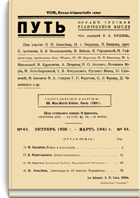 Путь: Орган русской религиозной мысли. №61. Октябрь 1939 - Март 1940