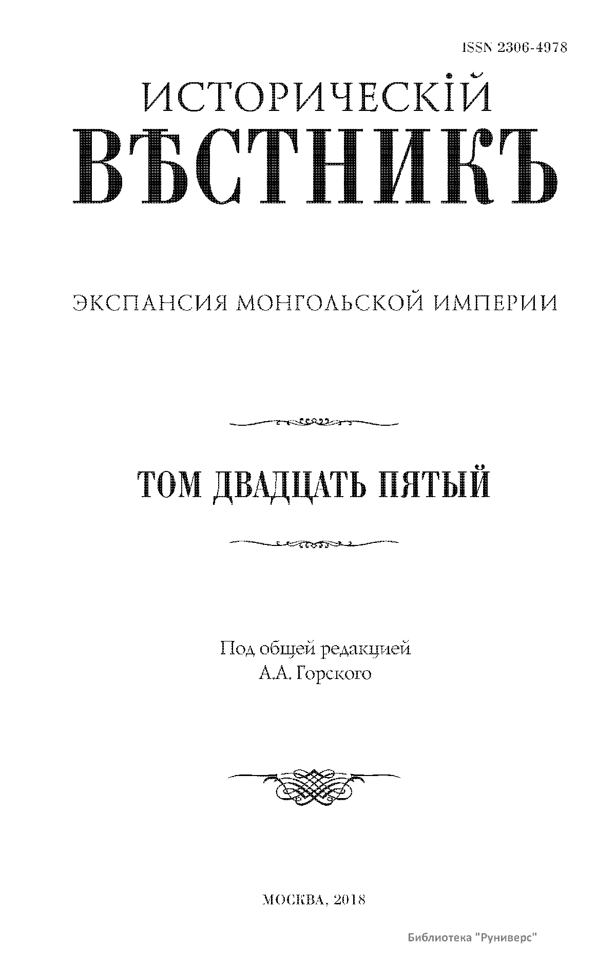 Исторический Вестник. Том двадцать пятый [172]. Экспансия Монгольской империи.