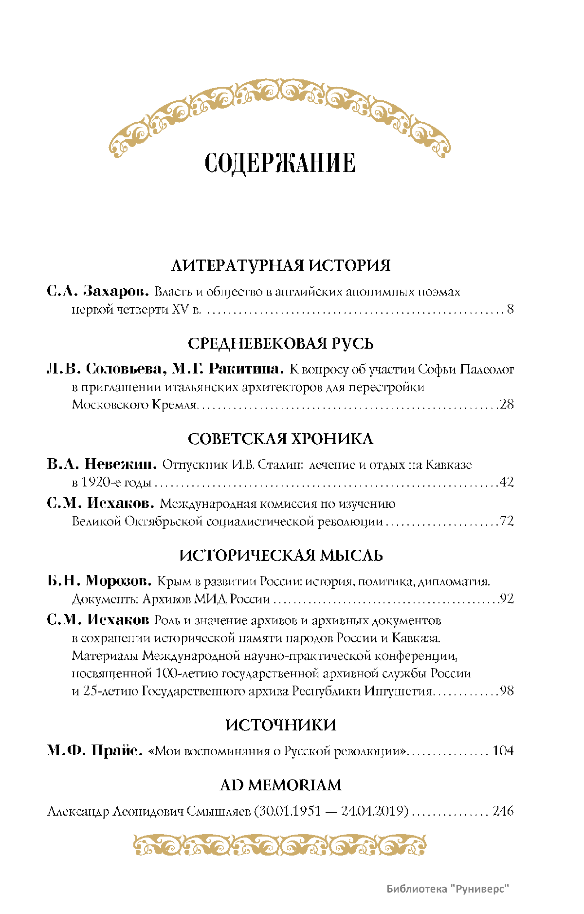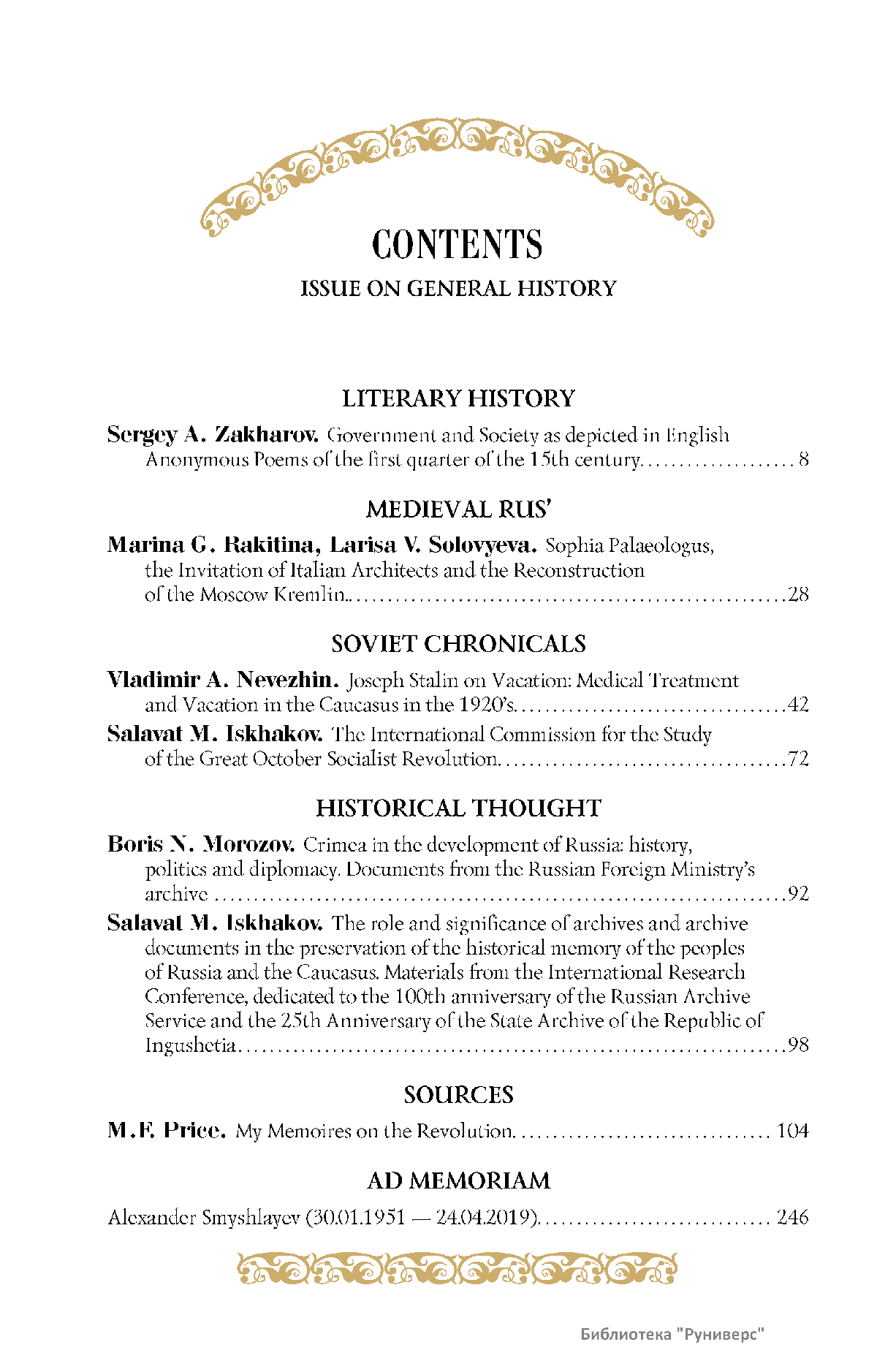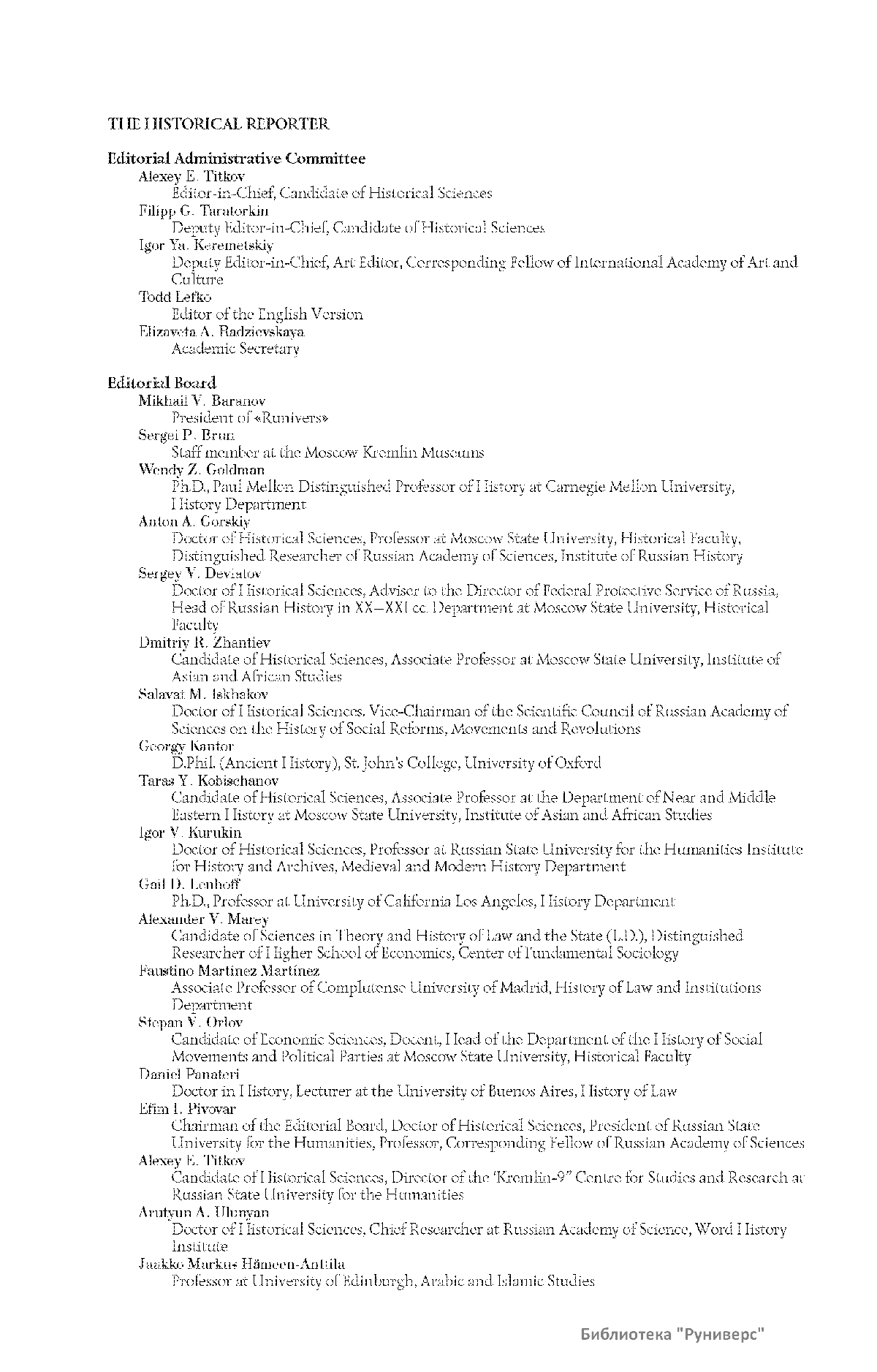Дорогие коллеги, мы представляем вам первый номер «Исторического вестника», который одновременно обозначается 148-м томом, тем самым продолжая дореволюционное издание. Однако, перешагивая почти сто лет, мы понимаем, что реалии XXI века определяют и новое содержание журнала. История сегодня во многом актуализирована политикой. Именно геополитическая ситуация в мире, возвращающая нас к вопросам сохранения существующих границ, национальных и культурных ценностей, моральных и религиозных принципов, формирует еще одно измерение — проблему аутентичного исторического бытования народов и государств. С одной стороны, это вопрос географических ареалов государственных образований, с другой — тема, связанная с соприкосновением, взаимодействием процессов, культур и традиций. Во многом мы стоим и перед важнейшей этической проблемой. Мы должны не только вежливо и настойчиво указывать нашим уважаемым соседям на свои исторические права, но и сами уходить от искушения искусственного удревнения собственной истории или присвоения чужой. И здесь на сцену выходит его величество Исторический Научный Факт. Он и есть главный цензор и законодатель. На этом незыблемом основании будет строиться редакционная и научная работа «Исторического вестника».