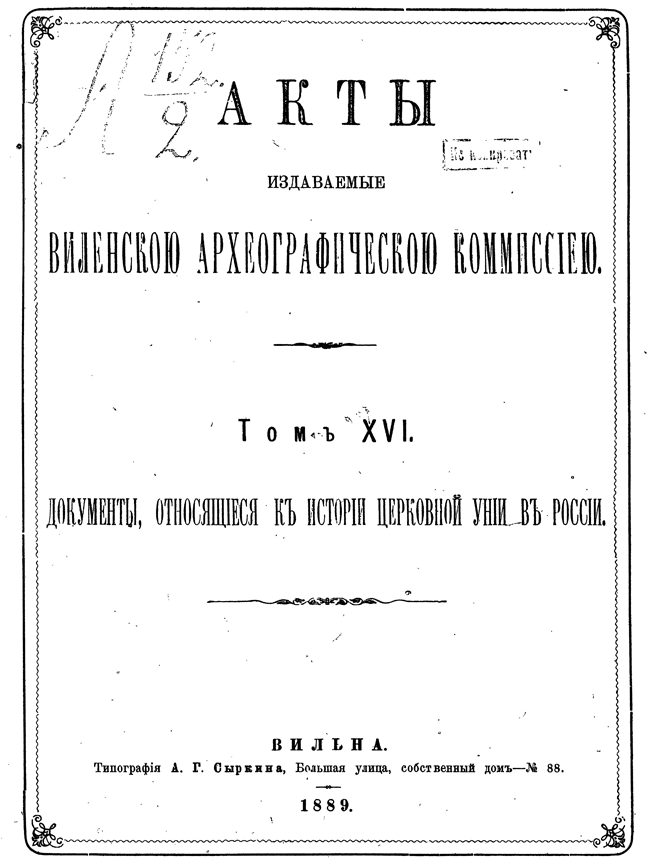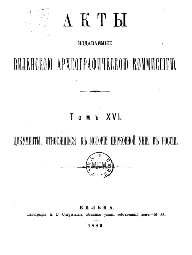 Обилие актов и документов Виленского центрального архива (19244 актовых книг) и желание исследовать прошлое Литвы, которая и в старину принадлежала России, вызвали после 1863 года учреждение особой комиссии для разбора в городе Вильне древних актов.