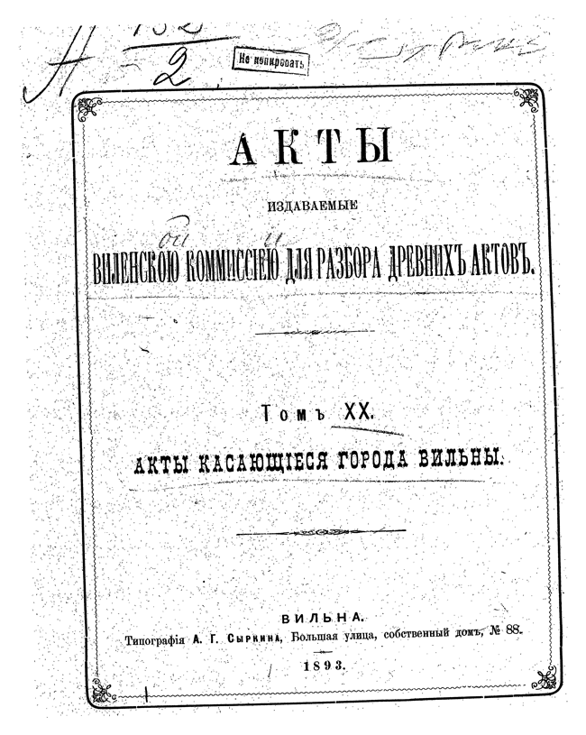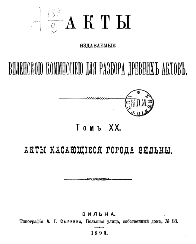 Обилие актов и документов Виленского центрального архива (19244 актовых книг) и желание исследовать прошлое Литвы, которая и в старину принадлежала России, вызвали после 1863 года учреждение особой комиссии для разбора в городе Вильне древних актов.