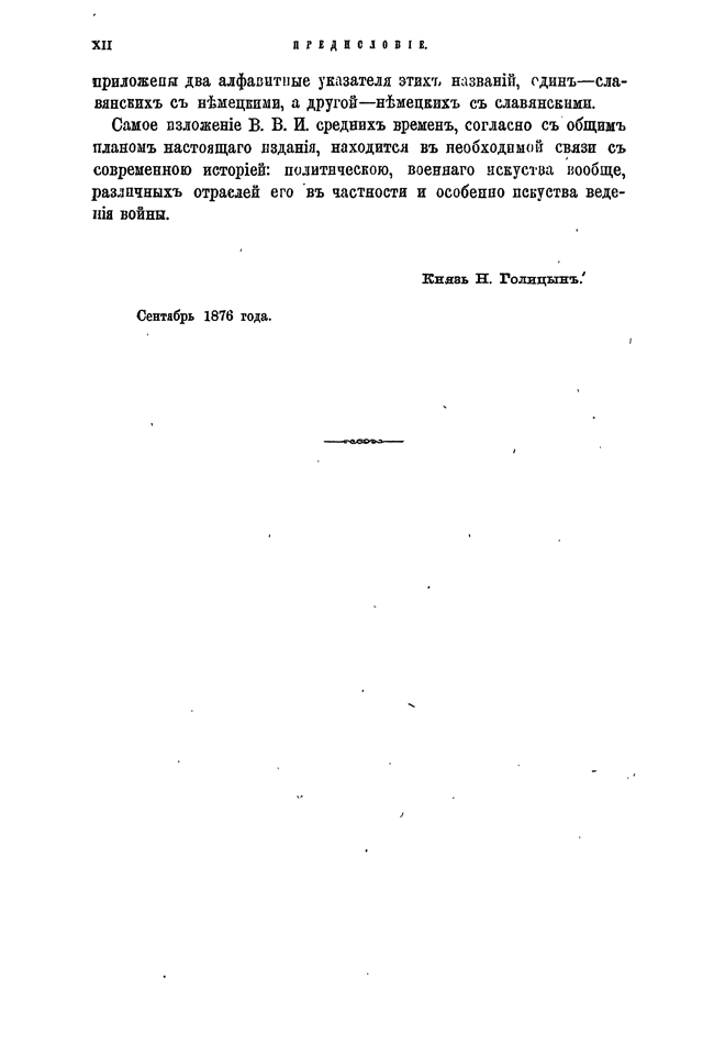 Свой капитальный труд «Всеобщая военная история» в 15 томах князь Николай Сергеевич Голицын создал в 1838-47 годах в период профессорско-преподавательской работы в Императорской военной академии, где он руководил кафедрой стратегии и затем — военной истории. На протяжении двадцати лет со времени учреждения академии не существовало учебного пособия на русском языке по военной истории. Голицын, с разрешения академического и высшего начальства, делает первый шаг к восполнению недостатка в военной литературе. Работа Голицына явилась первой в России и Европе попыткой полного систематического изложения всеобщей военной истории и задумывалась автором как руководство к преподаванию и изучению этого предмета.