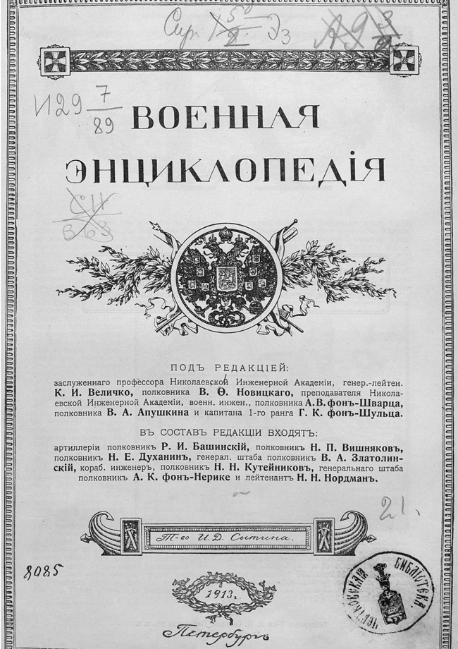 Благодаря издателю Ивану Дмитриевичу Сытину (1851-1934) энциклопедия по изяществу издания превосходила все подобные европейские издания того времени. В работе над энциклопедией принимали участие многие ведущие военные специалисты России, среди них особо выделяются генерал-майор А. Н. Апухтин, генерал-лейтенант М. М. Бородкин, генерал-майор И. И. Защук, капитан 2-го ранга П. И. Белавенец, полковник Н. М. Затворницкий, полковник П. Н. Краснов, генерал-лейтенанты А. П. Михневич, полковник А. Е. Снесарев, капитан В. К. Судравский и многие другие.