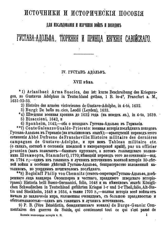 Великие полководцы истории. Часть 2. Великие полководцы новых времен: Густав-Адольф, Тюренн и Принц Евгений Савойский.