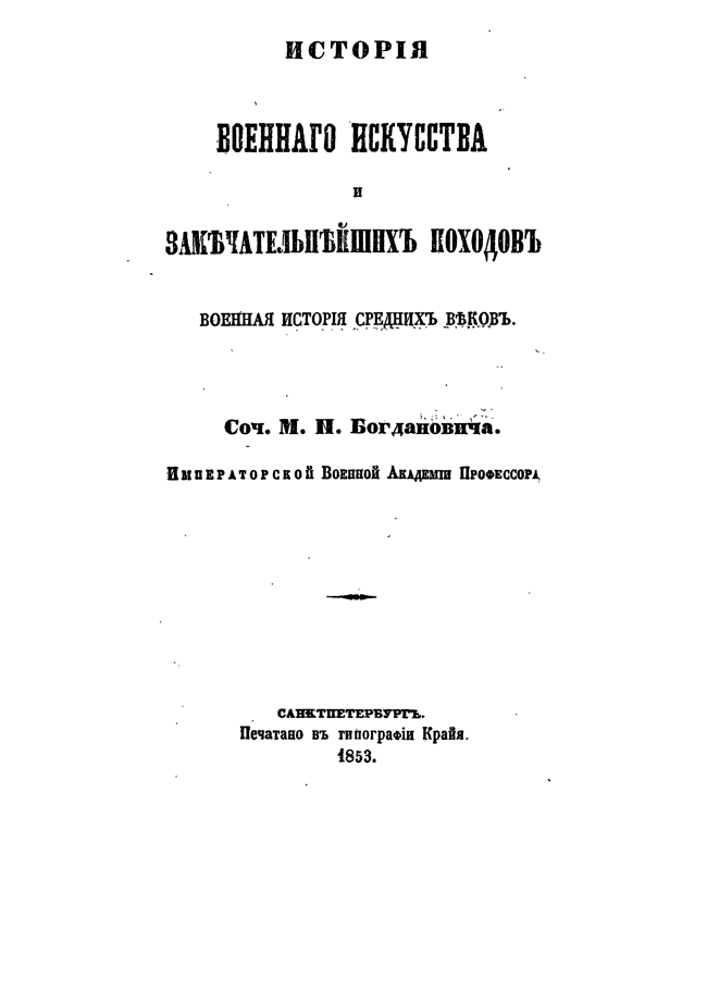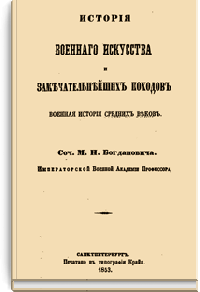 «История военного искусства и замечательнейших походов» задумывалась М. И. Богдановичем как обширный труд, охватывающий всеобщую военную историю от начала войн до XIX века. Им были составлены две части, посвященные военному искусству древности и средневековья.