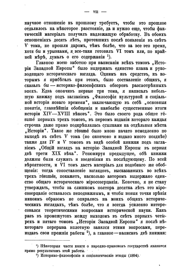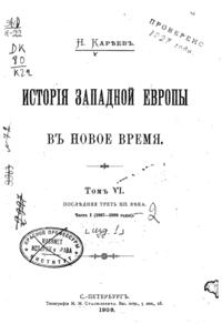 Первые тома вышли в начале девяностых годов 19 века и, посвященные- один «переходу от средних веков к новому времени», другой — «реформации и политической жизни в XVI и XVII вв.», третий — «XVIII веку и революции», — возникли из читанных им общих курсов новой истории, имевших своей целью выяснить значение двух главных переворотов в жизни европейского Запада за последние четыре века, т.е., реформации и революции — в связи с общим характером новой истории с её отличием от средневековой. Однако, позднее, Кареев решился раздвинуть границы первых задач и довести повествание до современнго ему положения дел.