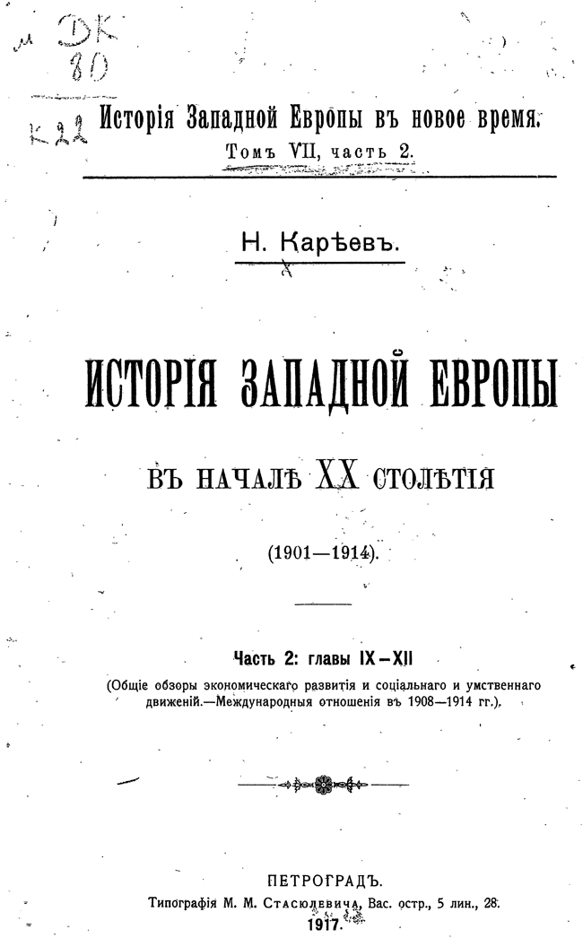 История Западной Европы в Новое время. Том VII. Часть 2. (Общие обзору экономического развития и социального и умственного движений. - Международные отношения в 1908-1914 гг.)
