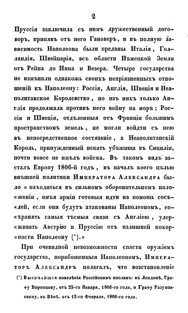 В своей второй книге, посвященной противостоянию Александра и Наполеона, Михайловский-Данилевский подробно рассматривает перепитии кампании 1806 и 1807 годов, причины неудач союзников и французских побед. Повествование основано на подлинных военных и дипломатических документах, и подкреплено ссылками на официальные акты.