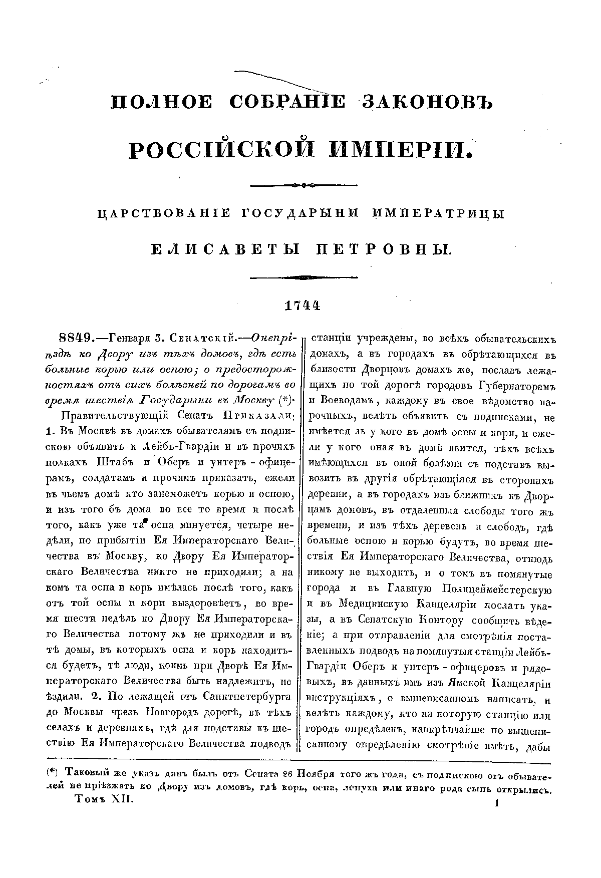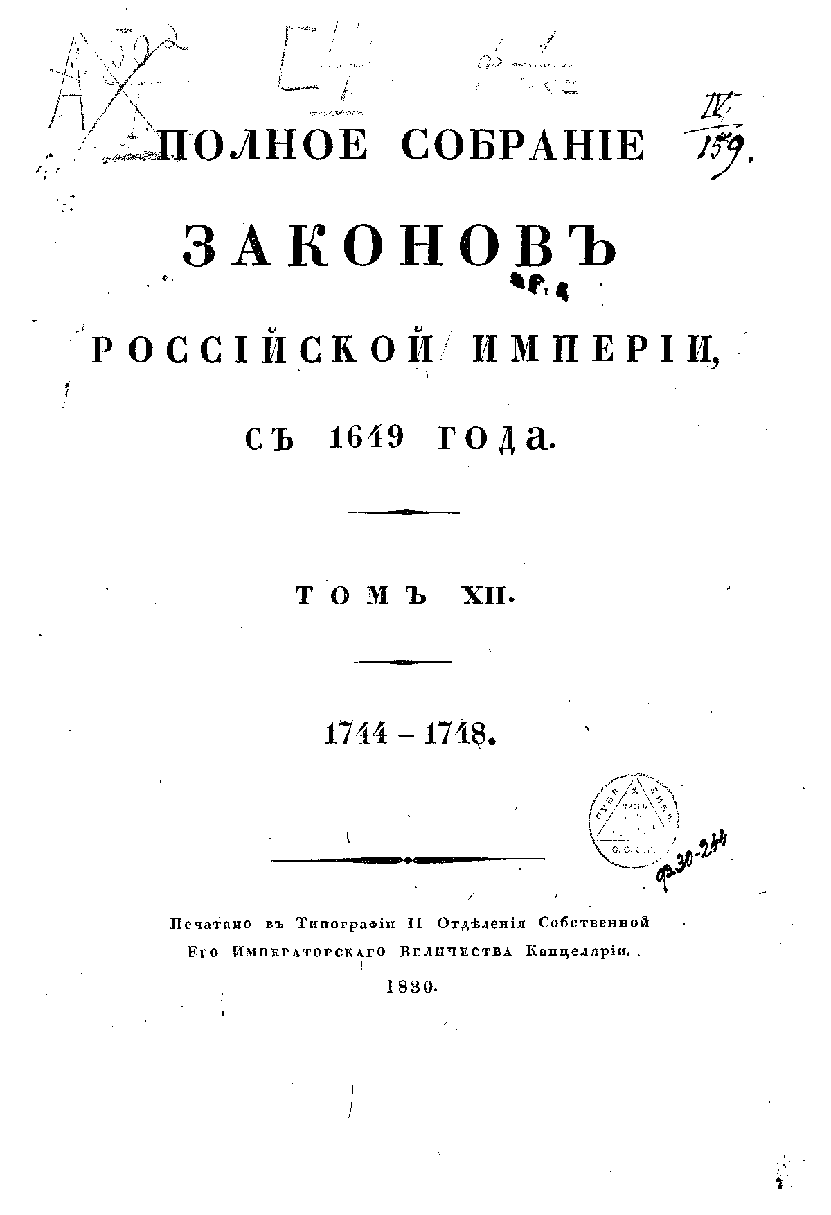 Полное собрание законов Российской Империи. Собрание Первое. Том XII
