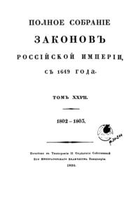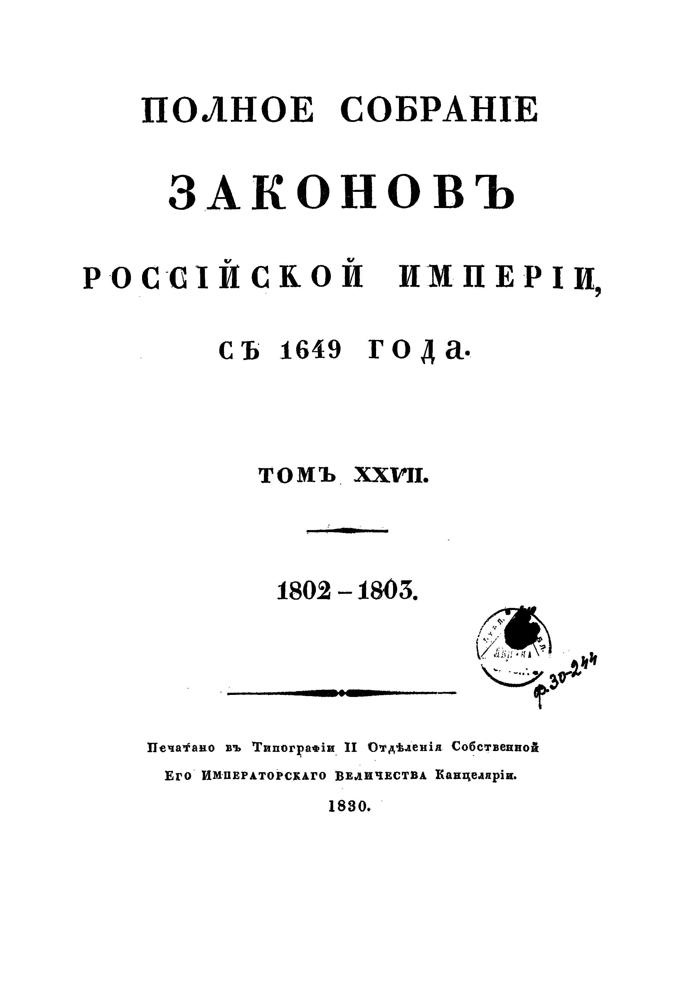 Полное собрание законов Российской Империи. Собрание Первое. Том XXVII
