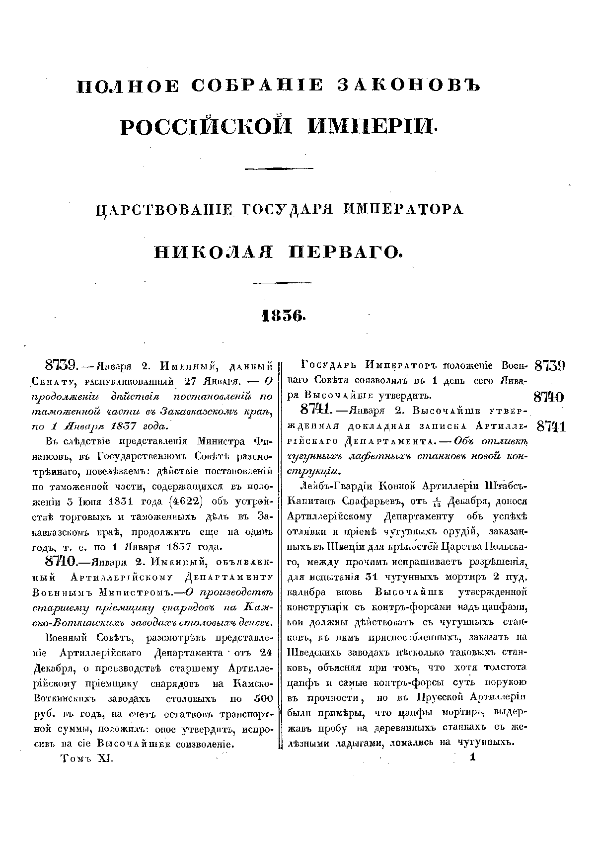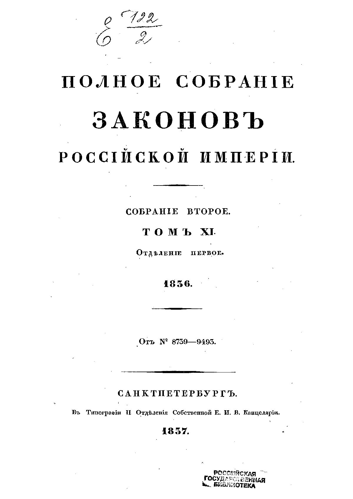 Полное собрание законов Российской Империи. Собрание Второе. Том XI. Отделение 1