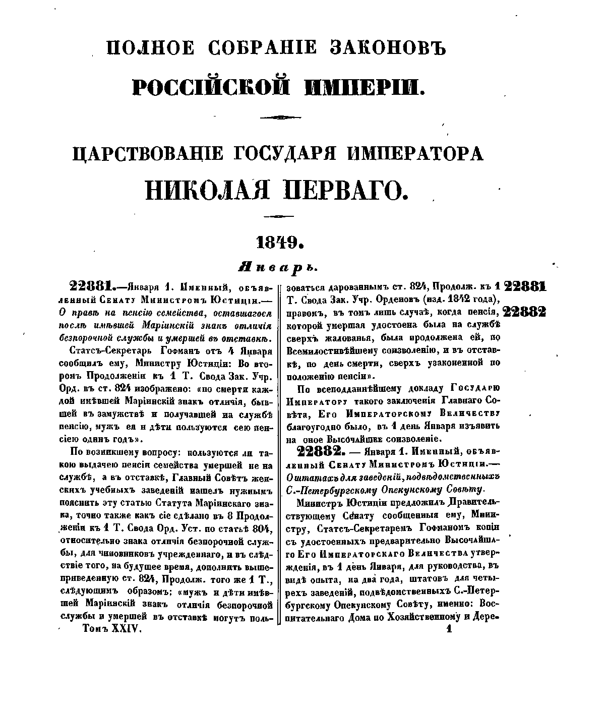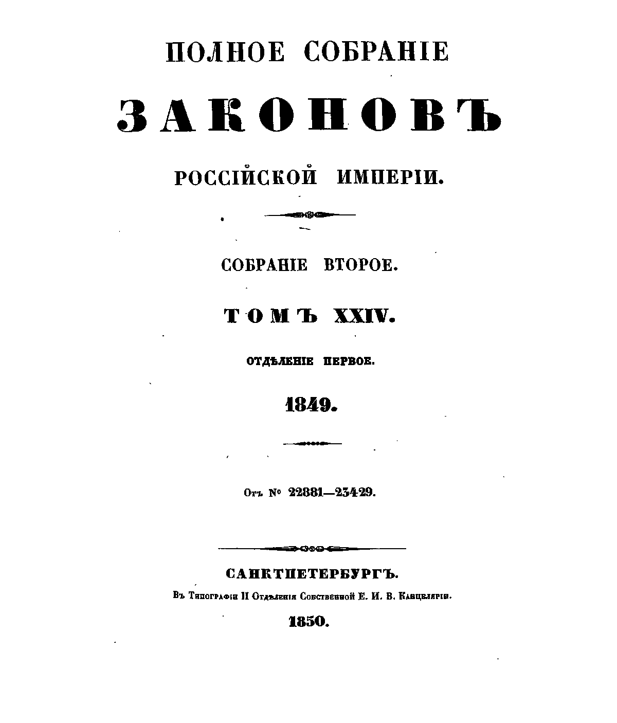 Полное собрание законов Российской Империи. Собрание Второе. Том XXIV. Отделение 1