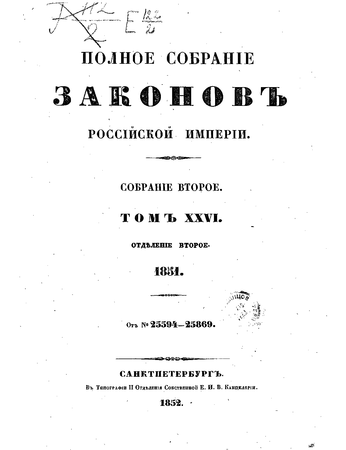 Полное собрание законов Российской Империи. Собрание Второе. Том XXVI. Отделение 2