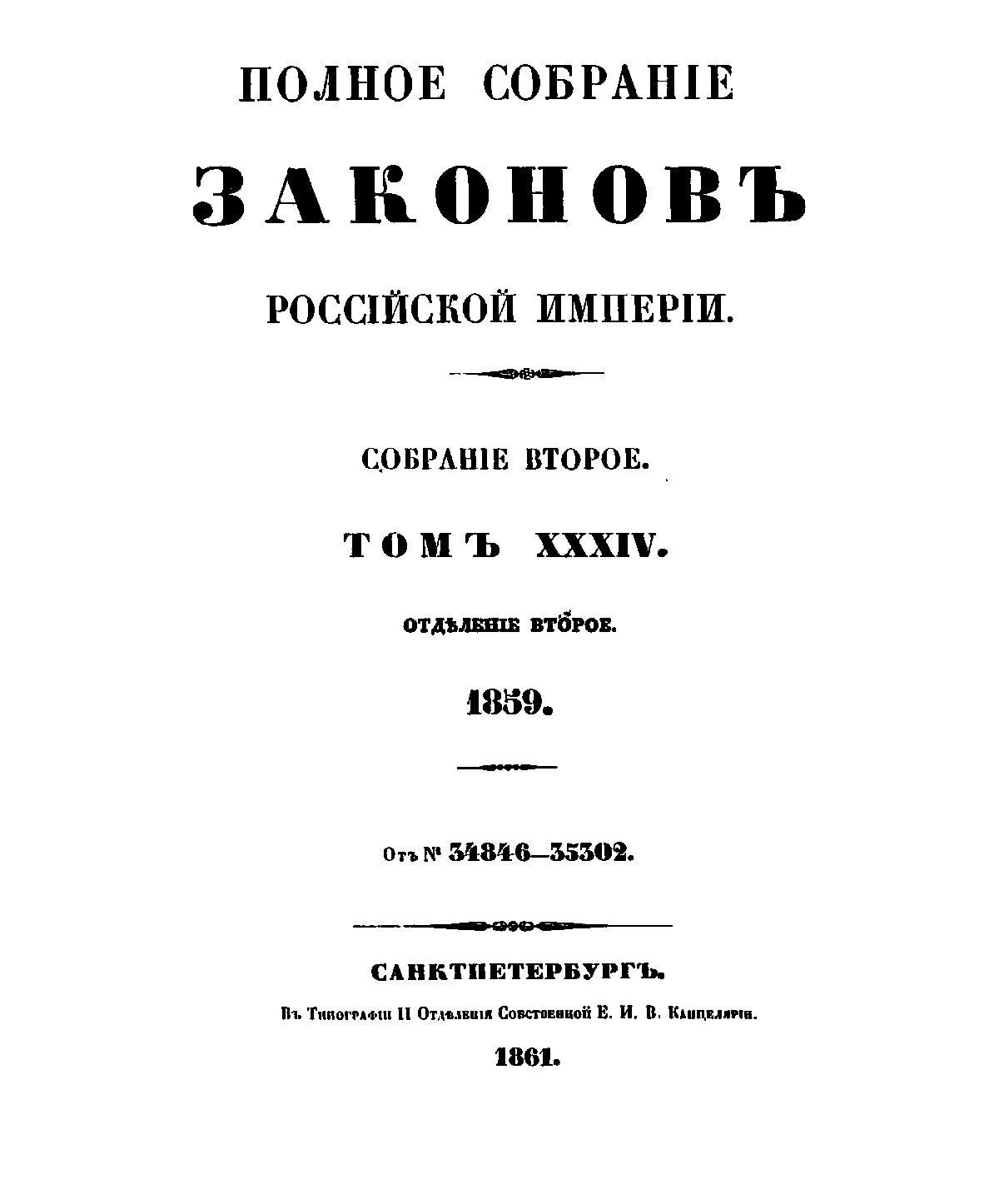 Полное собрание законов Российской Империи. Собрание Второе. Том XXXIV. Отделение 2