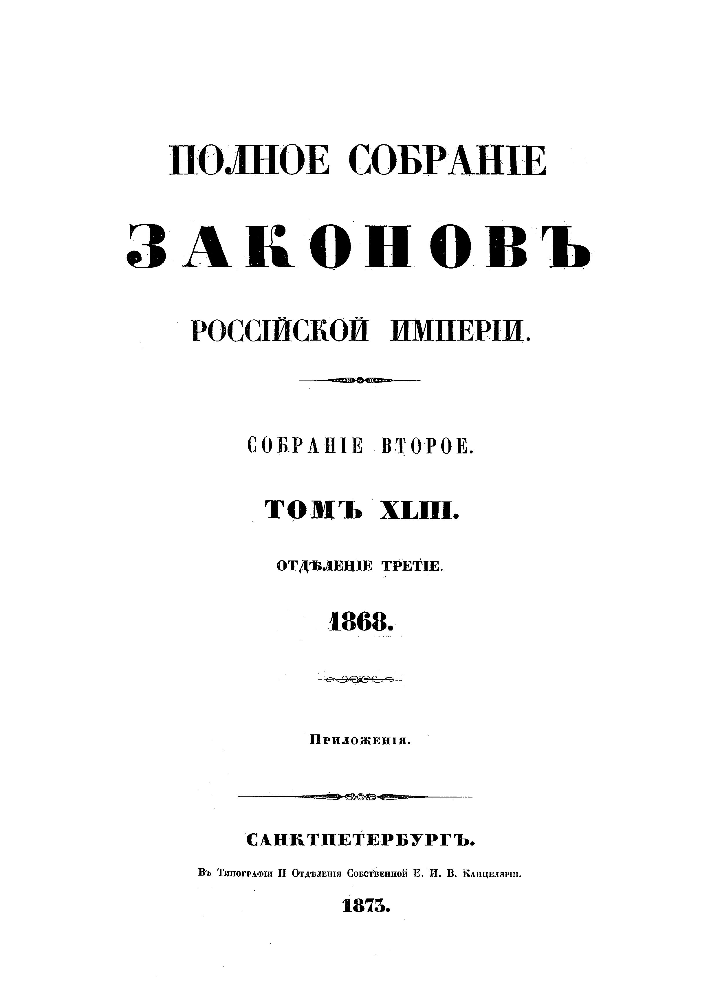 Полное собрание законов Российской Империи. Собрание Второе. Том XLIII. Отделение 3