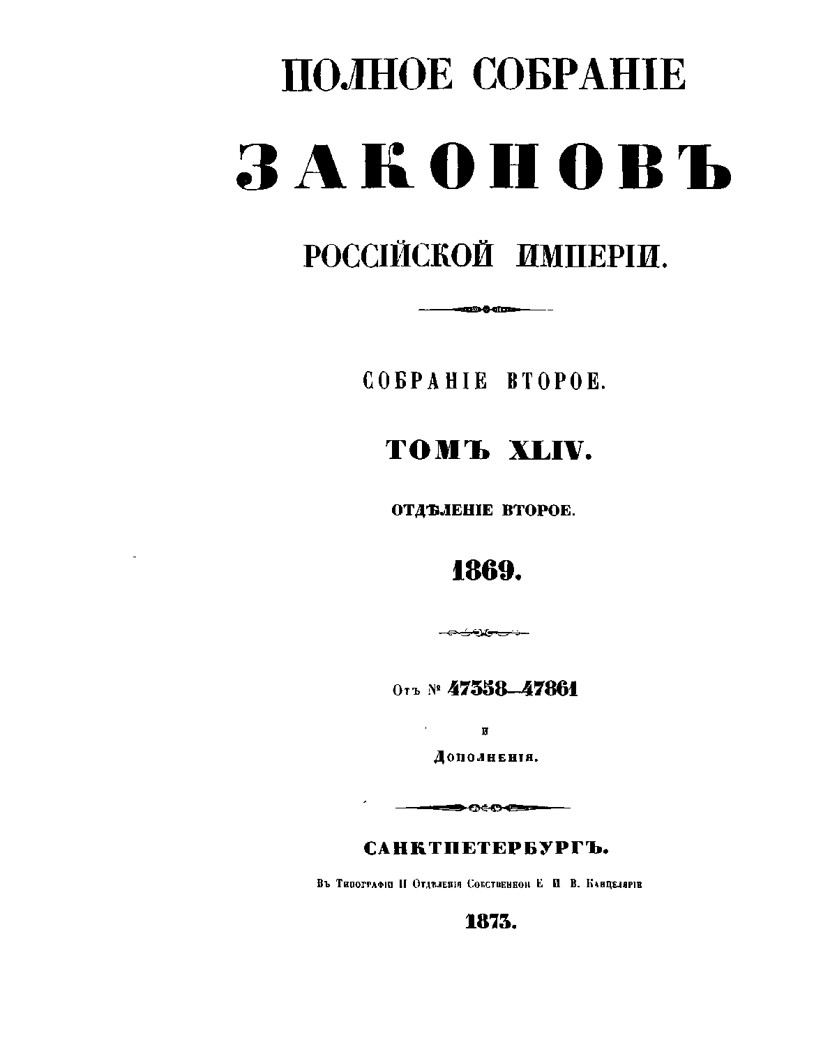 Полное собрание законов Российской Империи. Собрание Второе. Том XLIV. Отделение 2