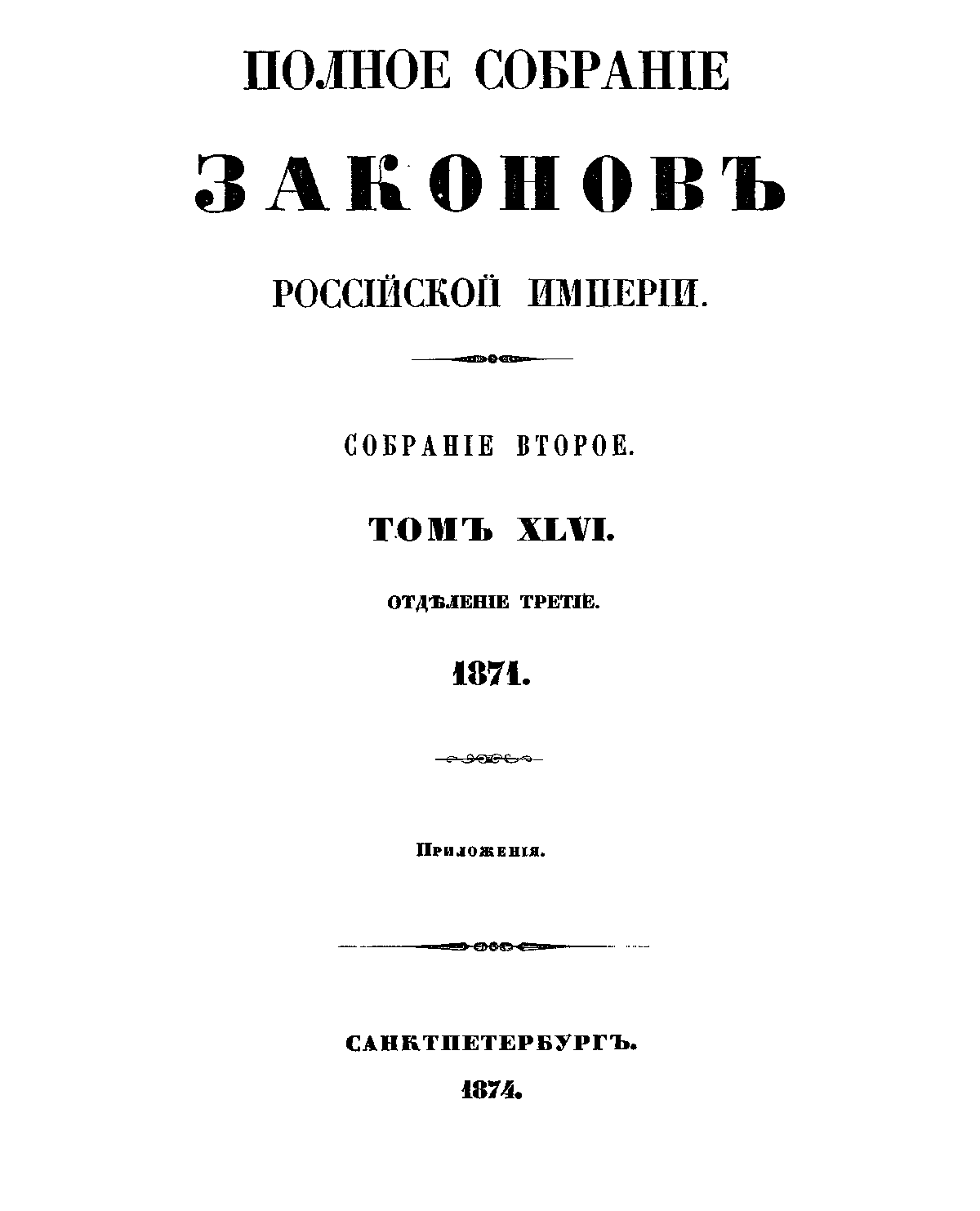 Полное собрание законов Российской Империи. Собрание Второе. Том XLVI. Отделение 3