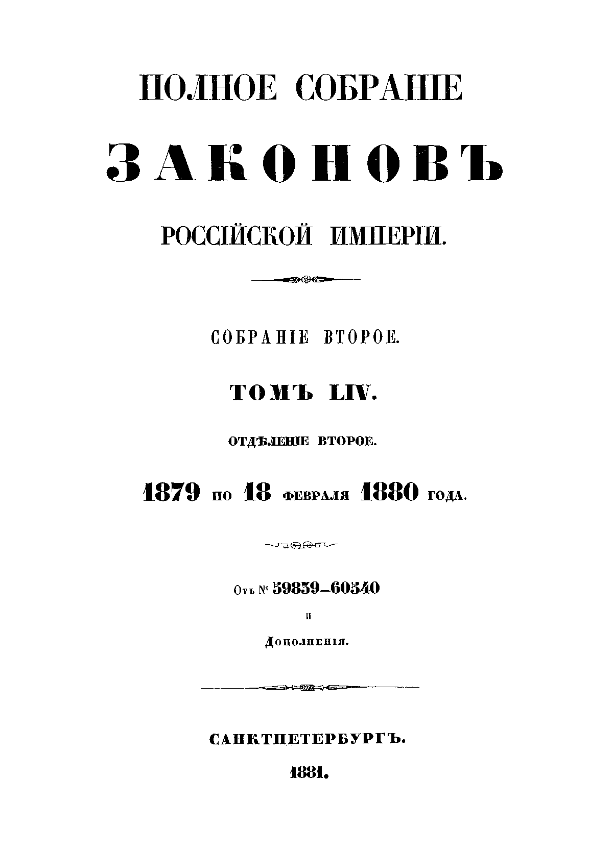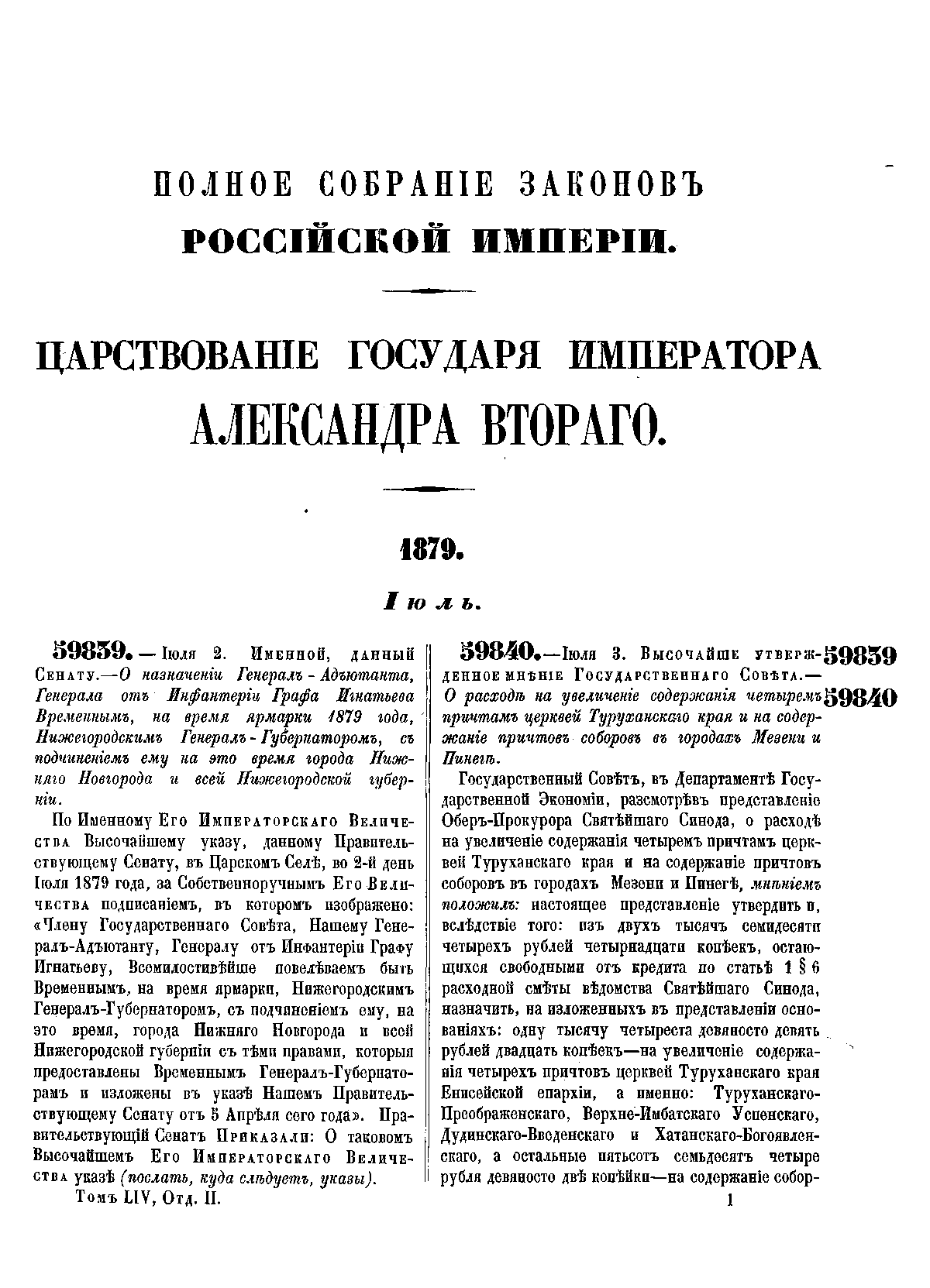 Полное собрание законов Российской Империи. Собрание Второе. Том LIV. Отделение 2